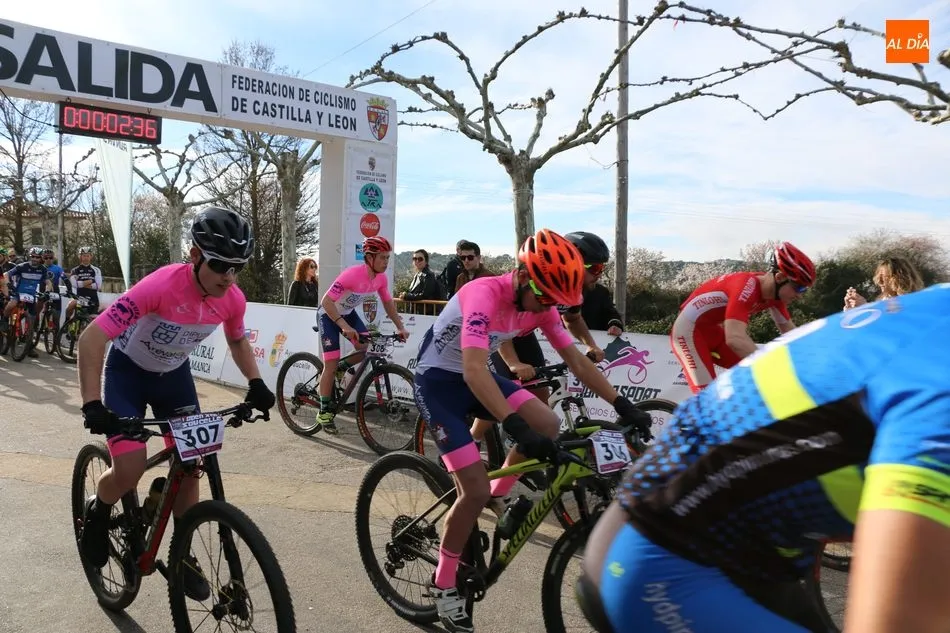 Casi 450 ciclistas participan este domingo en la localidad de Saucelle en el I Open de Ciclismo BTT XCO Saucelle, prueba puntuable para la Copa de Castilla y León de esta modalidad y que organizan el Ayuntamiento de Saucelle y el CD Promesal.