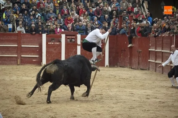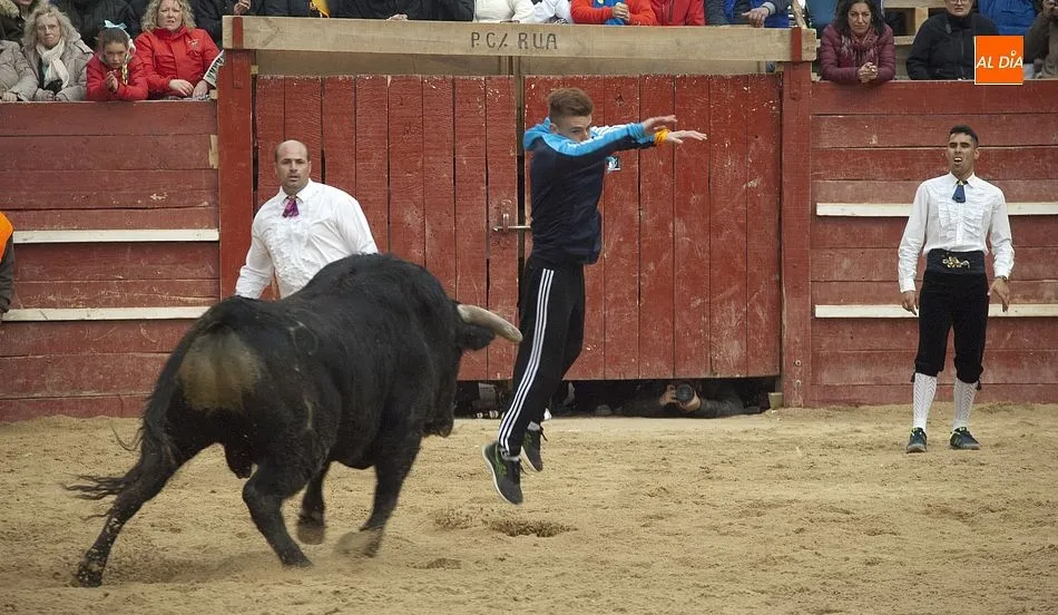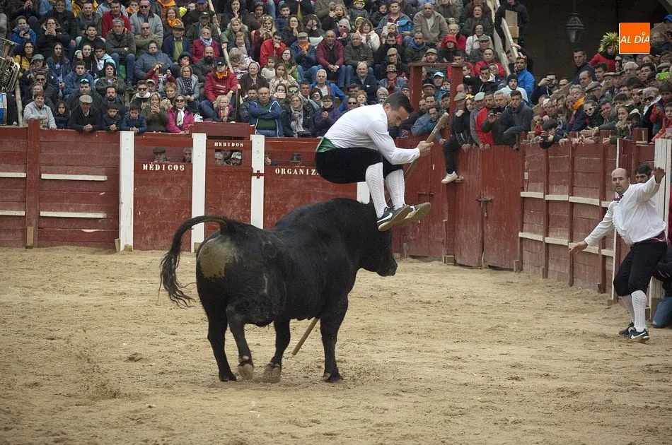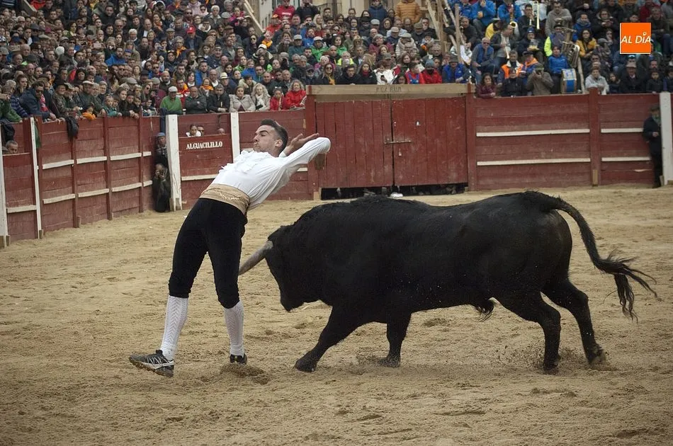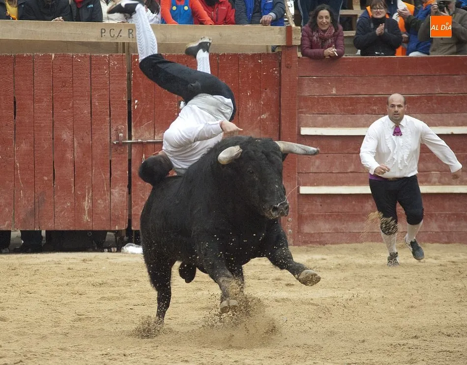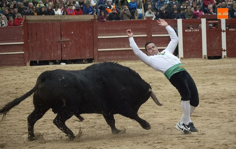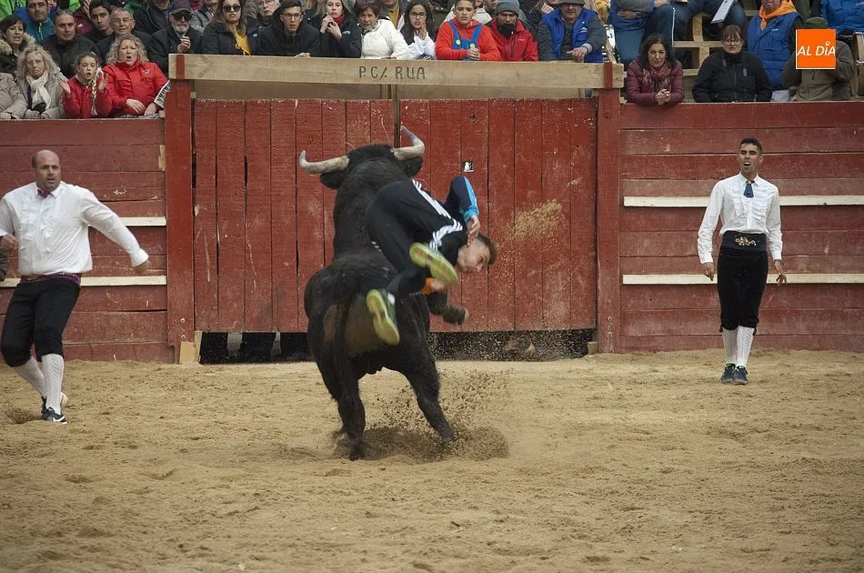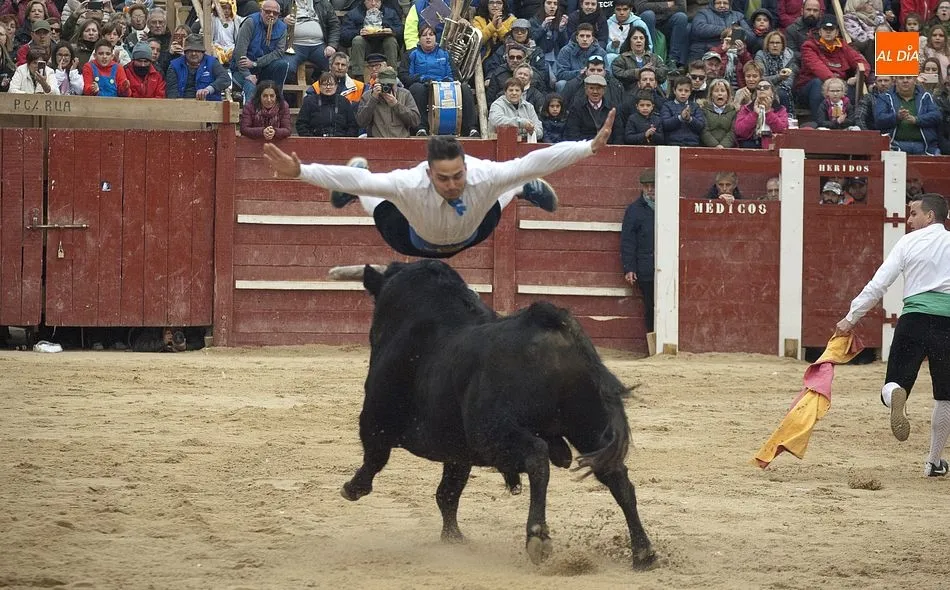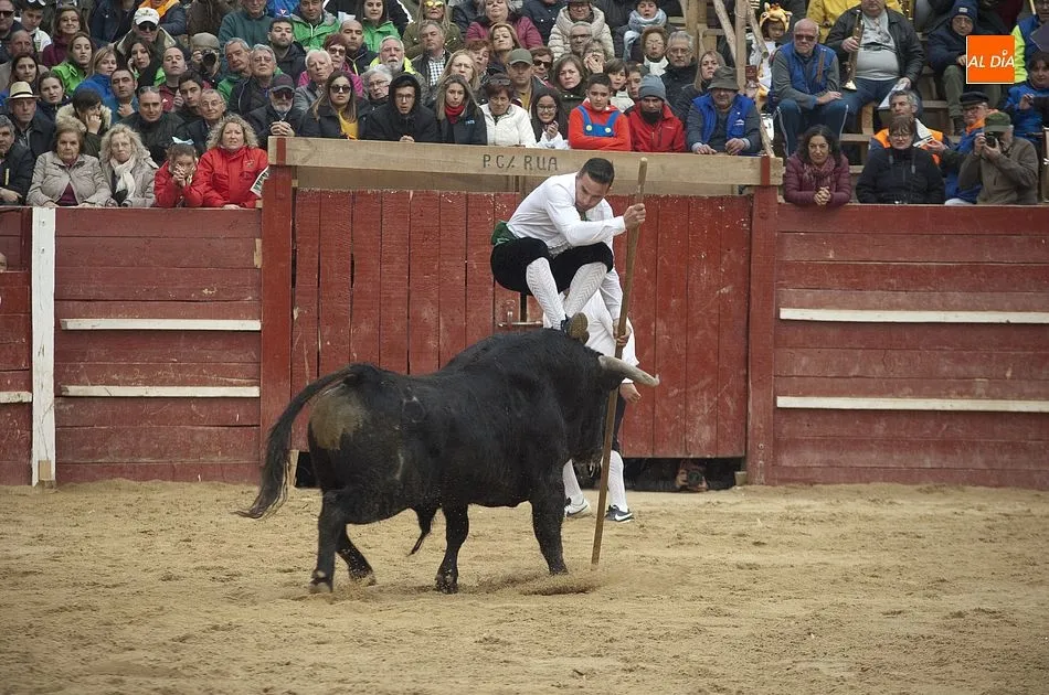 Dentro del cuádruple evento -y sin contar el desencierro- que acogió el coso de la Plaza Mayor de Ciudad Rodrigo durante la tarde del Lunes de Carnaval, volvió a estar una exhibición de recortes a cargo del grupo Arte Charro Espectáculos, que como en las dos ediciones anteriores fue posible gracias a que los constructores de los tablaos donaron el astado protagonista.