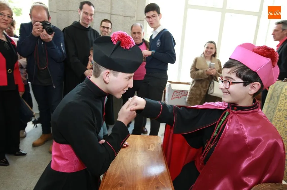 Después de la misa y de las fotos de rigor, las familias visitaron la cúpula y a continuación tuvo lugar el beso del anillo y reparto de golosinas para todos los niños en el claustro de la Escolanía. Tras la comida de hermandad, el acto de la tarde se celebró en el salón de actos. El Obispillo leyó el pregón y se procedió a la entrega de trofeos deportivos y de diplomas y premios del área escolar.