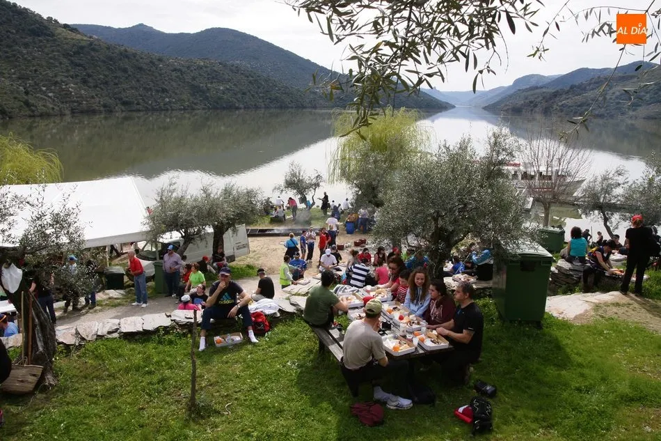 La ruta continúa por el discurrir de un Duero amansado por la presa de Saucelle para adentrarse en el auténtico arribe, así hasta llegar al paraje de Las Torres, en el que se encuentra una antiguo torreón que sirvió de vigía de la frontera. Desde este lugar los participantes se dirigirán hacia la Cruz de los Baños y ya destino a La Barca, donde les aguardará una suculenta comida a base de asados de carne.