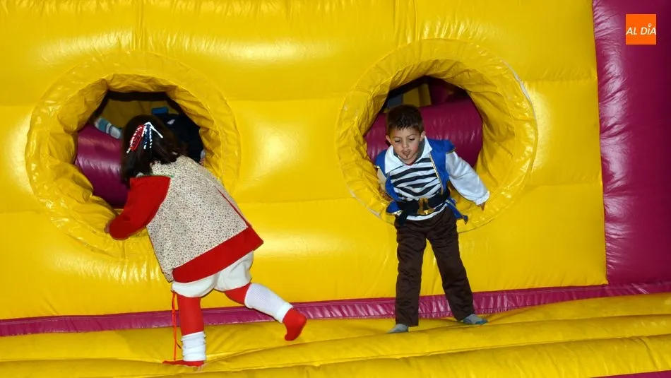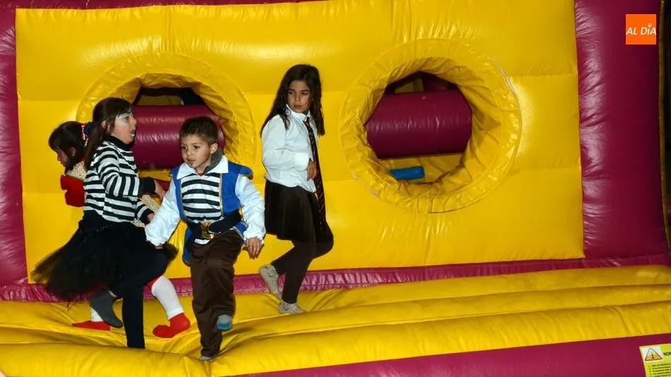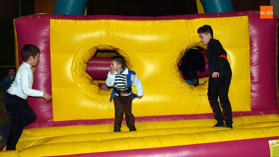 Los niños disfrutan con los juegos hinchables el Martes de Carnaval en Lumbrales