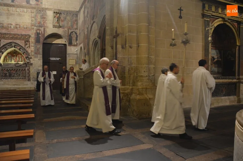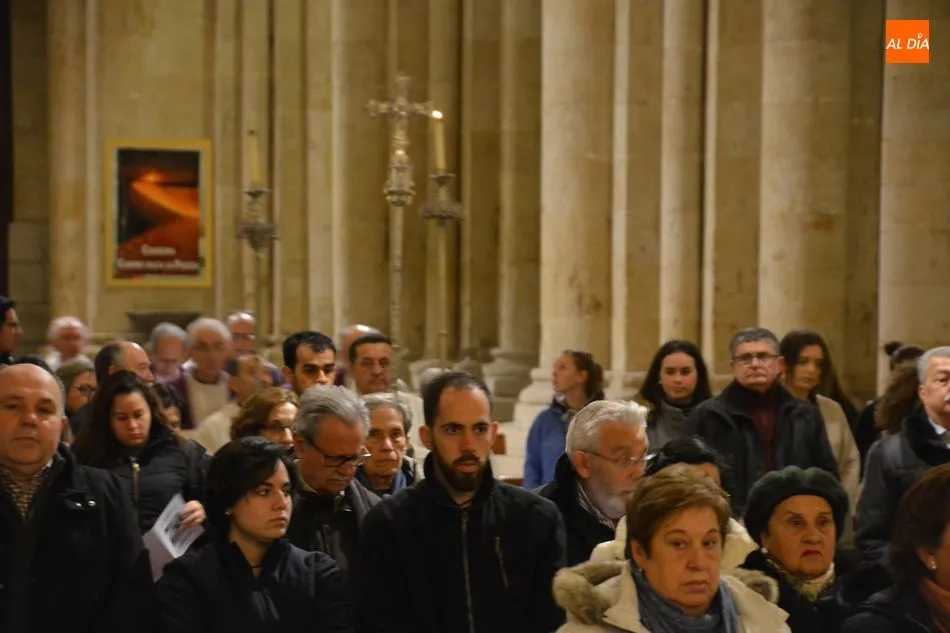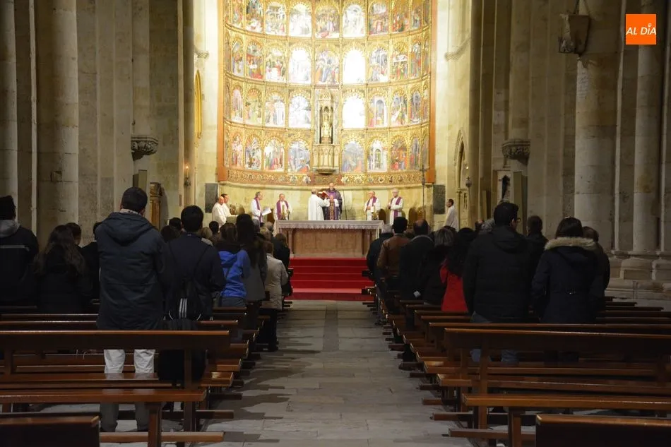 El obispo, Carlos López, ha presidido esta tarde en la Catedral Vieja la misa en la que se ha realizado la tradicional imposición de la ceniza, una celebración con la que los cristianos inician la Cuaresma, un tiempo litúrgico para la preparación de la Pascua, donde destacan la oración, la penitencia y la limosna.