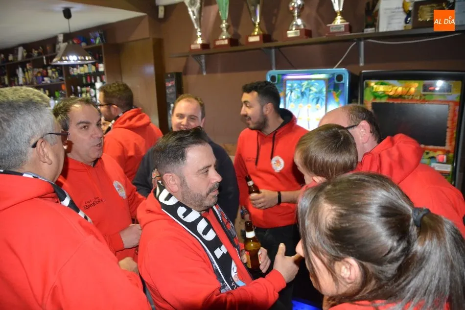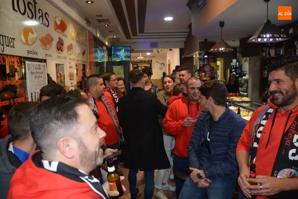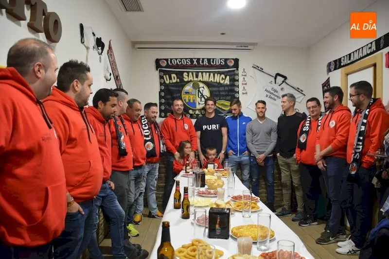 La peña ?Locos por la UDS? del Salamanca UDS fue inaugurada esta tarde de manera oficial por los integrantes del primer equipo Antonio Amaro, Iván Calero y Sergio Molina. María Hernández, ex entrenador del equipo, acudió también al acto junto a los tres integrantes del primer equipo blanquinegro.