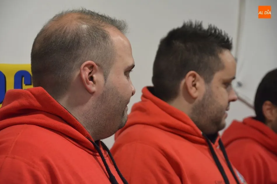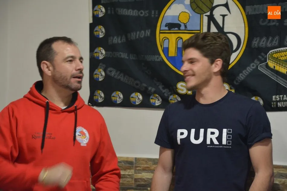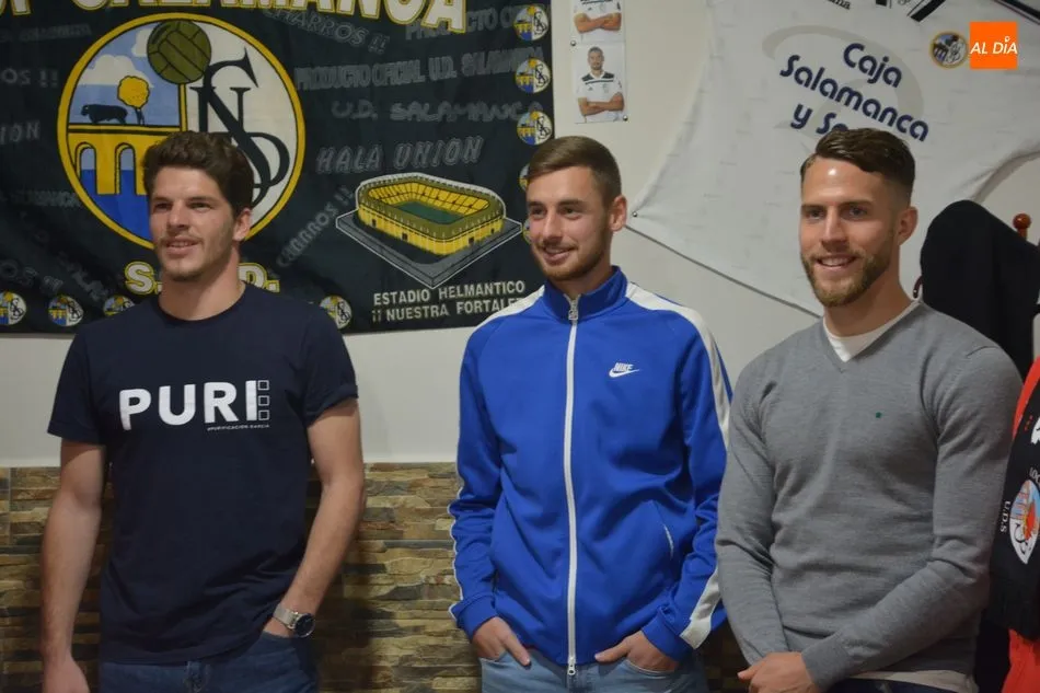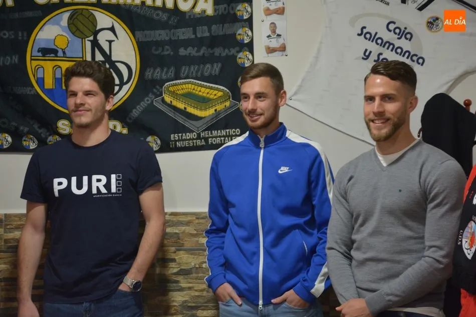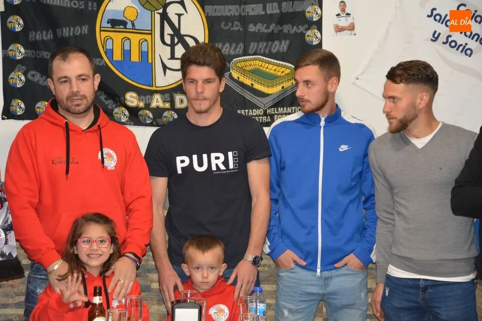 María Hernández, ex entrenador del equipo blanquinegro, acudió también al acto junto a los tres integrantes del primer equipo del Salamanca UDS