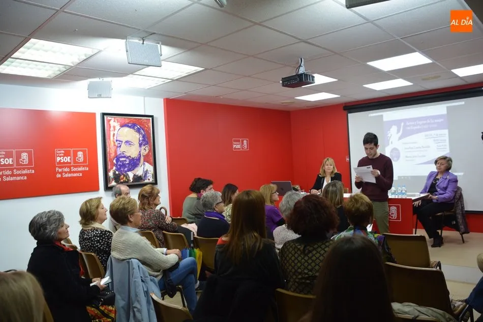 Posteriormente, ha tenido lugar una charla-coloquio, organizada desde las secretarias de Igualdad y Memoria Histórica de la Ejecutiva Provincial, denominada ?Retos y logros de la Mujer 1931-2019? a cargo de Josefina Cuesta Bustillo, catedrática emérita de USAL, y María José Turrión, historiadora.