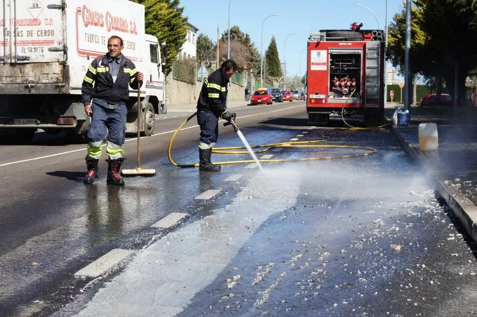 Los bomberos de Guijuelo limpian un vertido de manteca