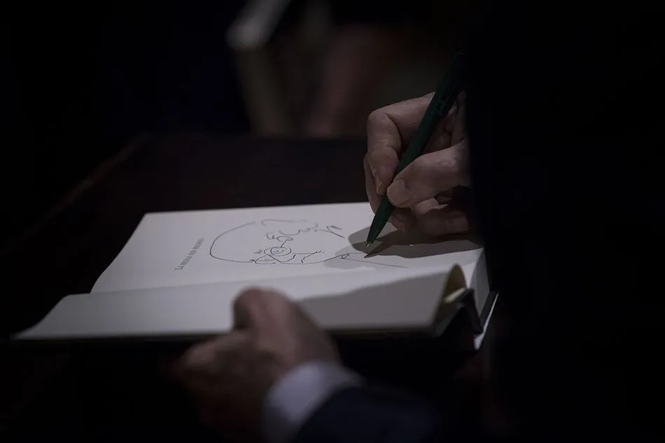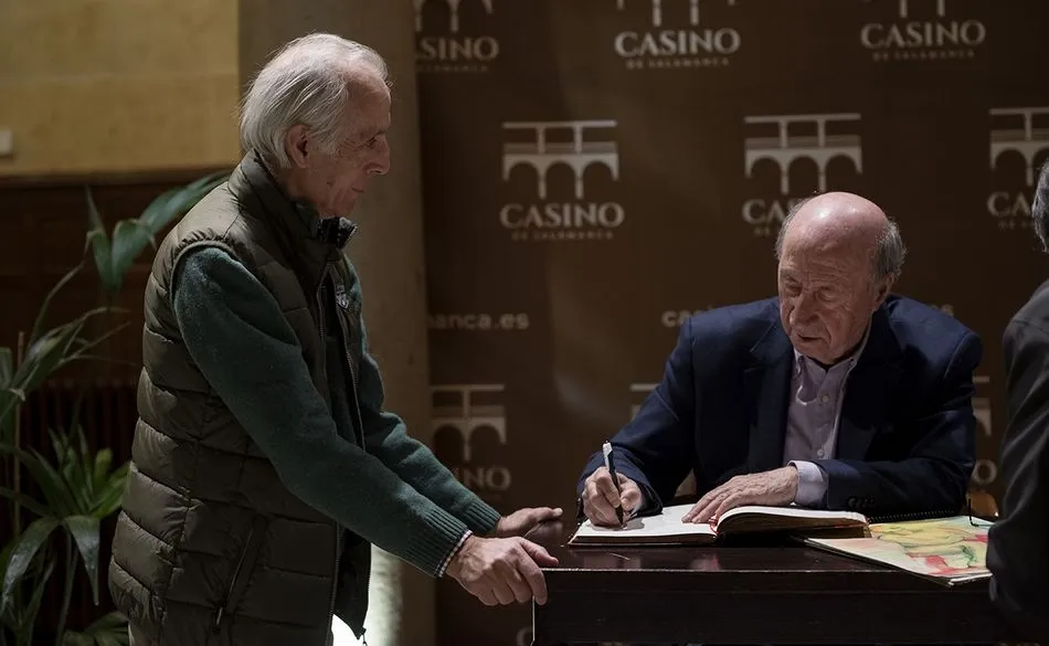 Es esa sorna en el trazo y en la palabra la que convierte a Peridis en un conferenciante único. En el silencio reverente del Palacio de Figueroa, narra con toda la gracia su visita al Presidente de la entonces Caja Duero para encontrar financiación para su proyecto con una frase que hace reír al auditorio y nos recuerda que de bien nacidos es ser agradecidos ?Yo vengo a hacer de Labordeta y tú tienes que ponernos las pesetas?, de ahí que afirme que cuando le llaman de Salamanca ?se me van los pies?.