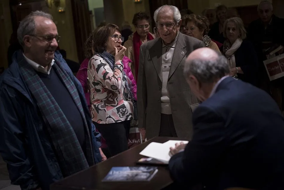 Y es de su condición de arquitecto, de donde tira del hilo Alberto Estella, desde el conocimiento y el temple de quien sabe llevar el diálogo, para recordarnos que, en la novela que presenta Peridis esta tarde en El Casino, La reina sin reino, tiene un gran protagonismo uno de los edificios que quizás refleja mejor la historia medieval española: la mezquita de Córdoba. Un espacio, que para Peridis, rompe con la tendencia propia de la arquitectura, la de arrasar con todo, para mantener con respecto y admiración un edificio clave. La conquista de Córdoba, para el Peridis historiador, supone un hito que dio la vuelta a la historia, esa historia que, en el presente, cuenta en forma de viñetas en las páginas de nuestros periódicos.