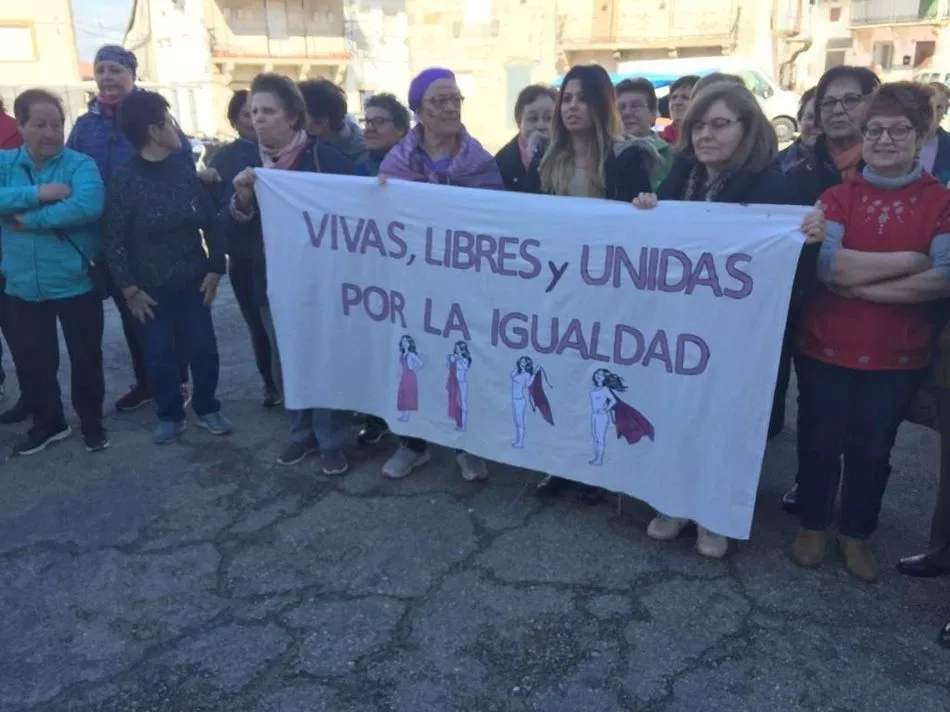 Tras una gran pancarta en la que se leía ?Vivas, libres y unidas por la igualdad?, este viernes, 8 de marzo, las mujeres de Villarino de los Aires, al igual que en el resto de España, se han movilizado y han salido a la calle para revindicar sus derechos.