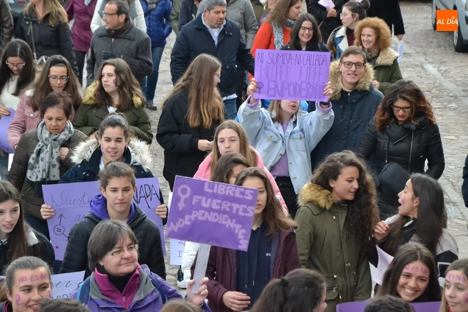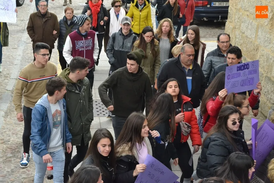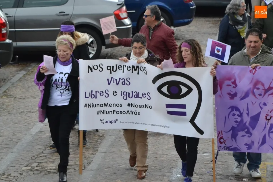 En este sentido, Alejandra Méndez y Domingo Benito sí estuvieron presentes en la manifestación convocada a media mañana por la Asociación de Mujeres Progresistas Lorenza Iglesias (Ampli), a la que se sumaron numerosos jóvenes. Esta manifestación se puso en marcha junto al Monumento al Garrochista, dirigiéndose por el Registro y la calle Madrid hacia la Plaza Mayor, donde se fueron sumando más personas, contabilizándose en total algo más de 250 (el año pasado la asistencia fue un poco inferior).