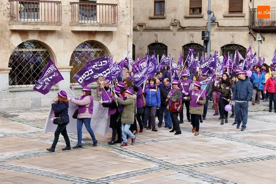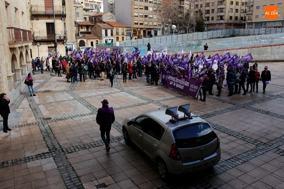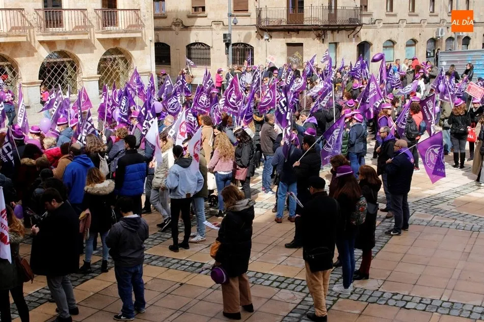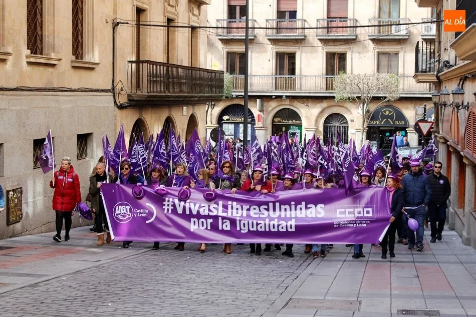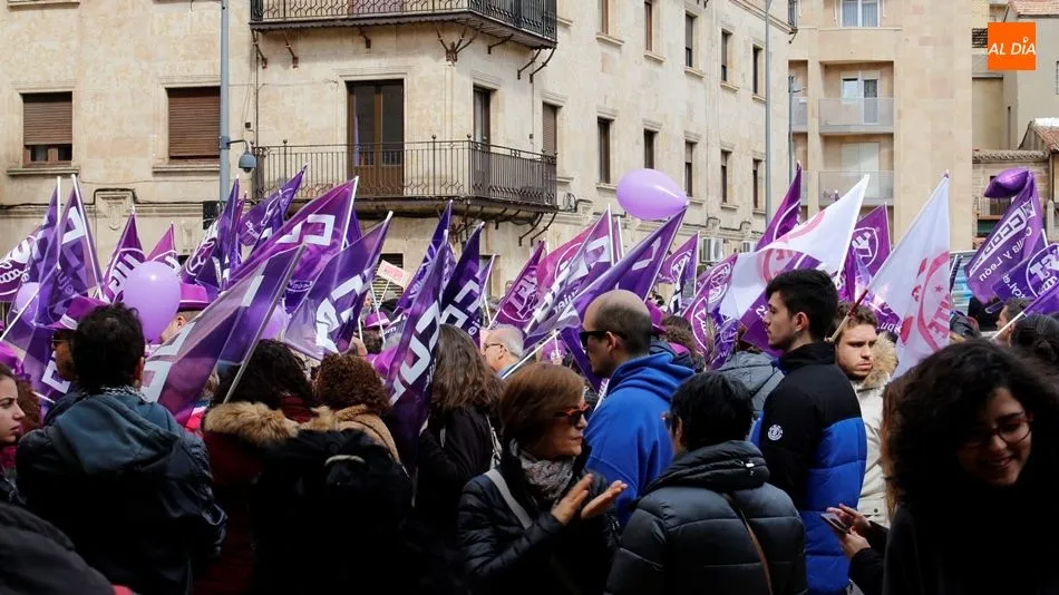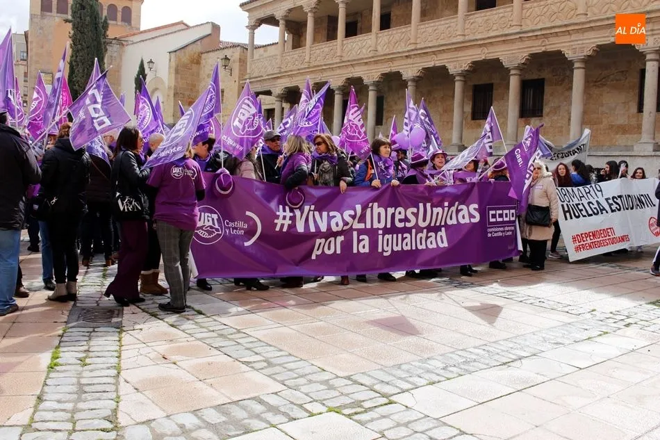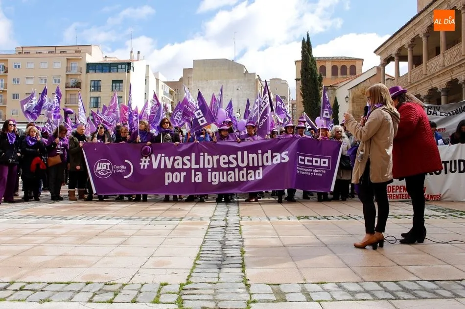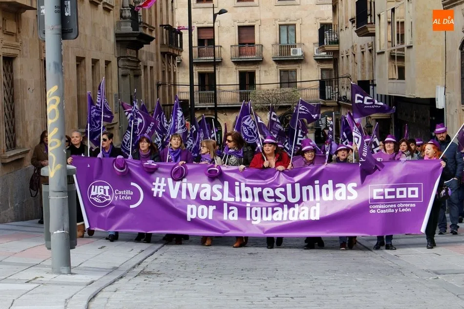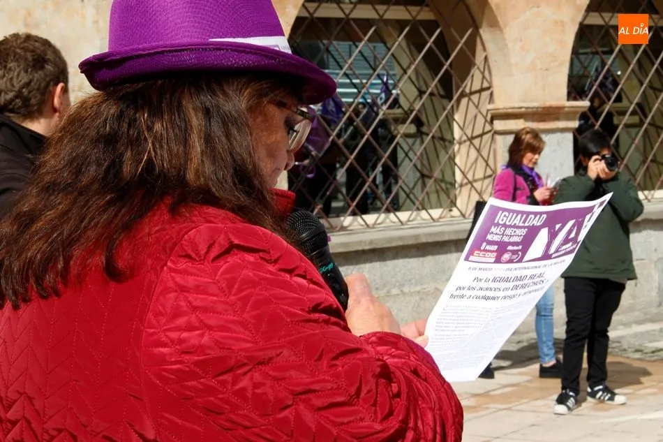 Nati Ortiz, de CCOO, y Fonsi Buenafuente, de UGT, coincidían en que ?sin igualdad, faltan derechos?, y ponían como ejemplo la importante brecha salarial ?en todas las ocupaciones?, que en Salamanca alcanza el 18,32%, con salarios medios para los hombres de 19.856 euros frente a los 16.219 euros de las mujeres.