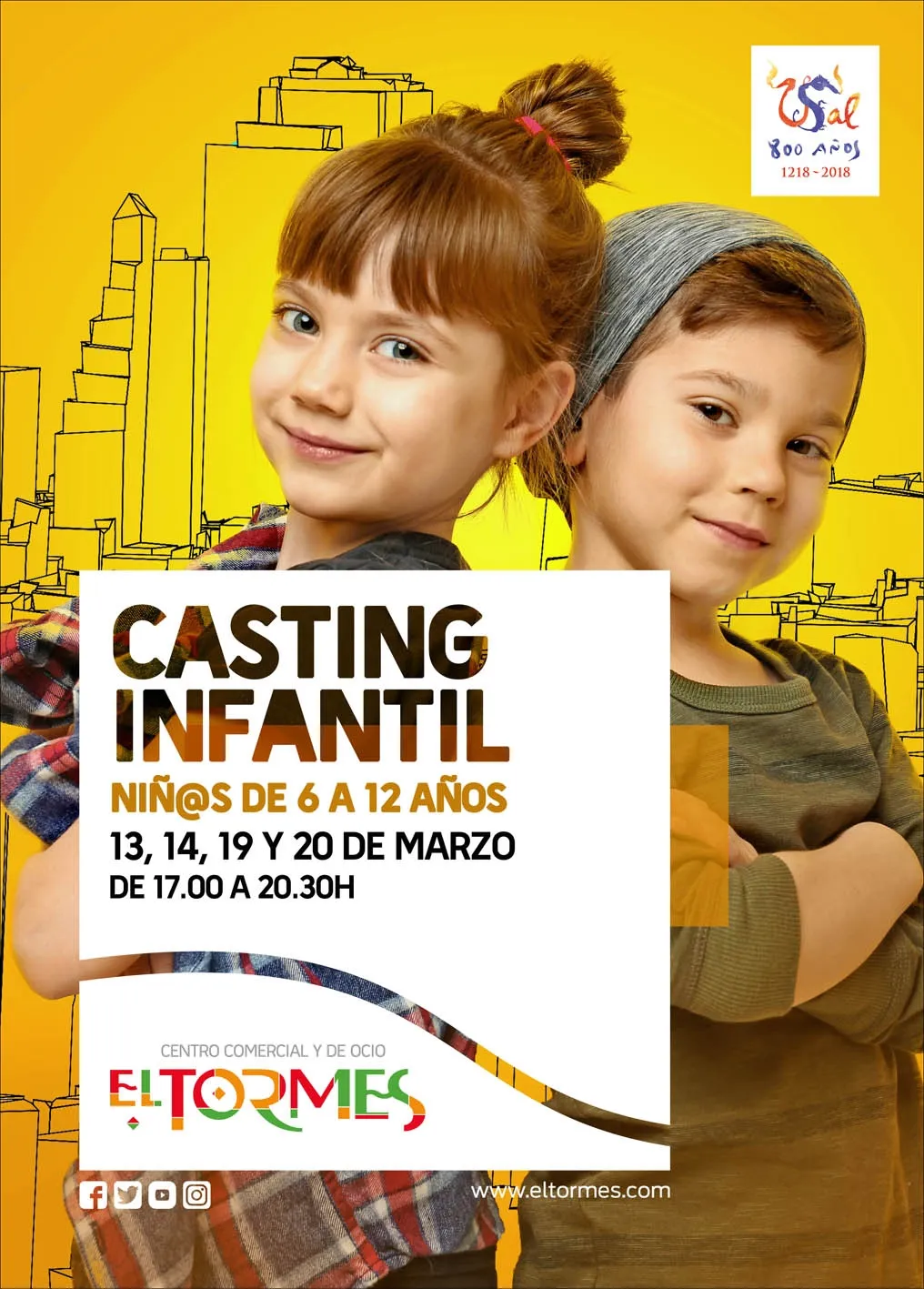 El Centro Comercial El Tormes celebrará los próximos días 13, 14, 19 y 20 de marzo un casting infantil que servirá para seleccionar a los protagonistas de la campaña ?Quiero ser?? que se desarrollará en colaboración con la Universidad de Salamanca y también para el desfile de moda primavera verano. En este casting podrán participar niños y niñas con edades comprendidas entre los 6 y los 12 años que cuenten con una autorización firmada por el padre, madre o tutor. Siete de los niños seleccionados participarán en la campaña ?Quiero ser?? que el Centro Comercial El Tormes desarrollará en colaboración con la Universidad de Salamanca con motivo de su VIII Centenario.