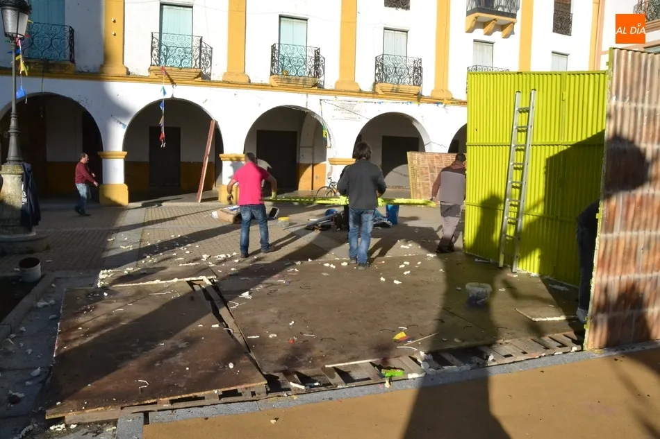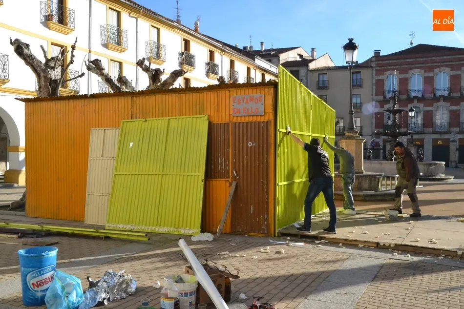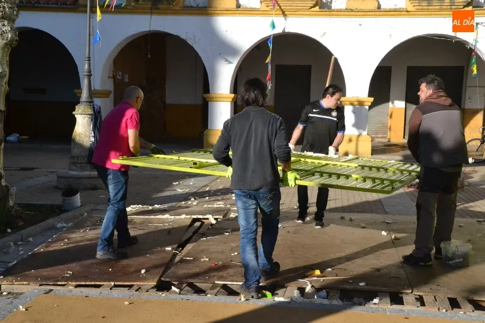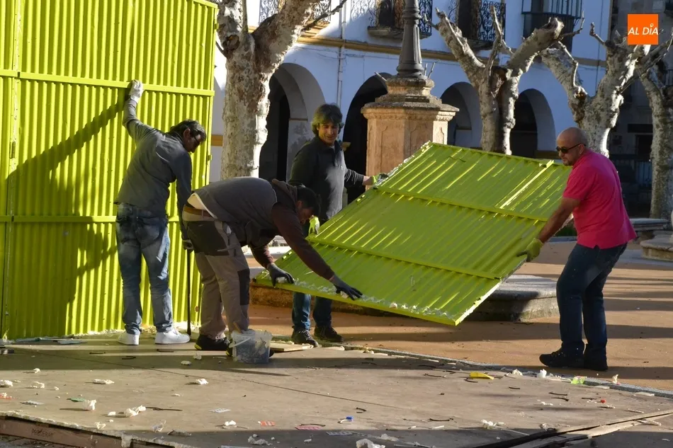 Dentro de los ?ritos? del fin de semana post-carnavalero en Ciudad Rodrigo también está el desmontaje de las casetas instaladas en la céntrica Plazuela del Buen Alcalde, que han permanecido un total de tres semanas en pie (fueron levantadas dos semanas antes de Carnaval).