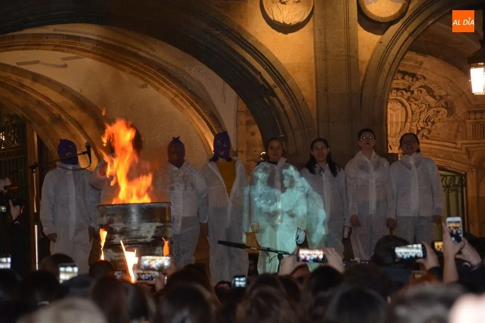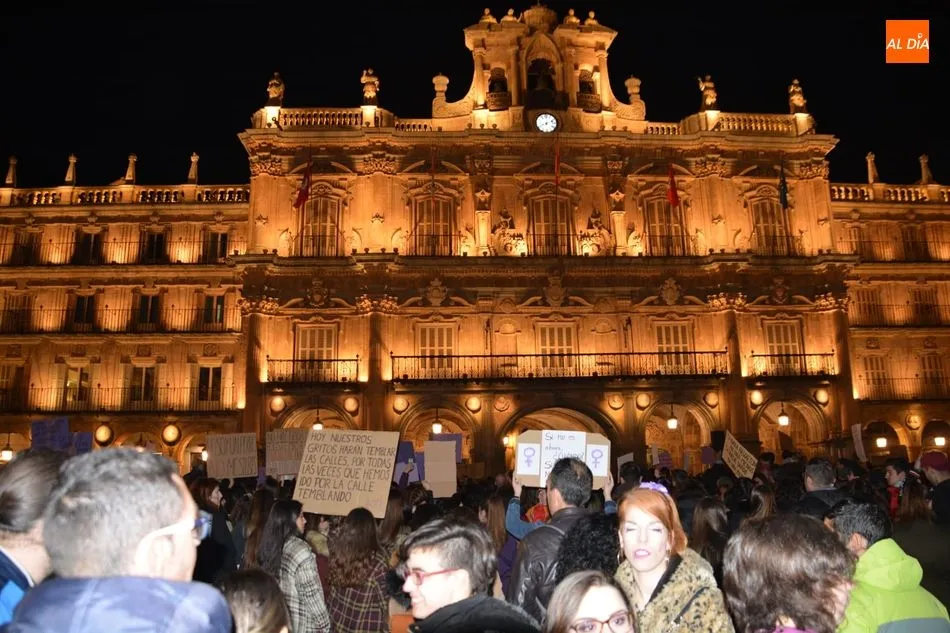 La manifestación ha finalizado en una Plaza Mayor abarrotada, donde se ha procedido a leer un manifiesto y ha habido una performance a cargo del grupo de teatro Bacantes. Con estos actos se ponía el broche de oro a una jornada histórica de lucha por la igualdad que ha unido a toda la sociedad salmantina.