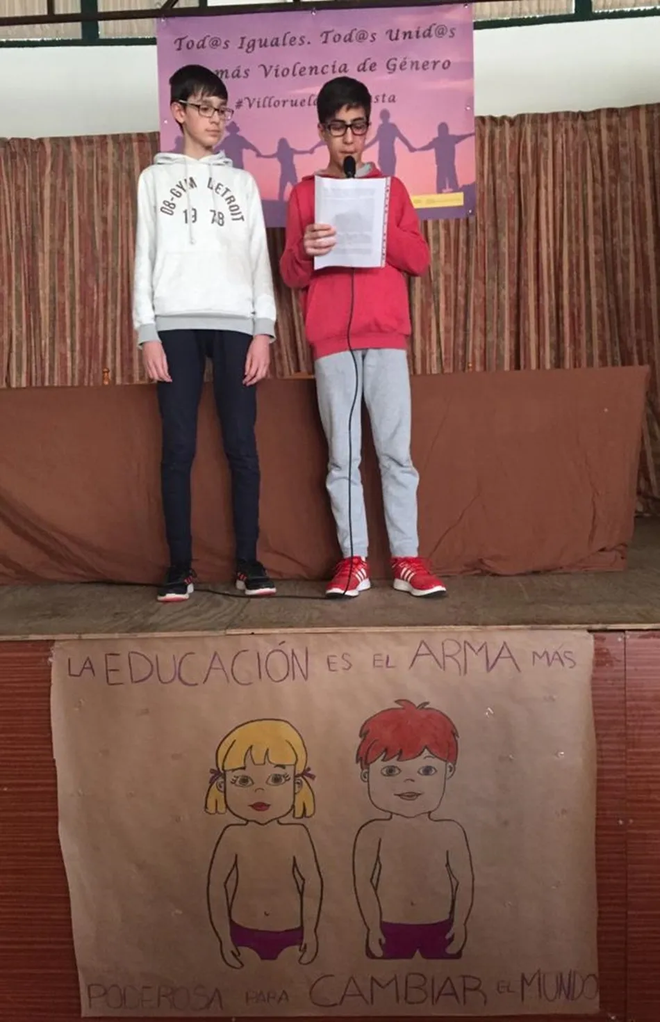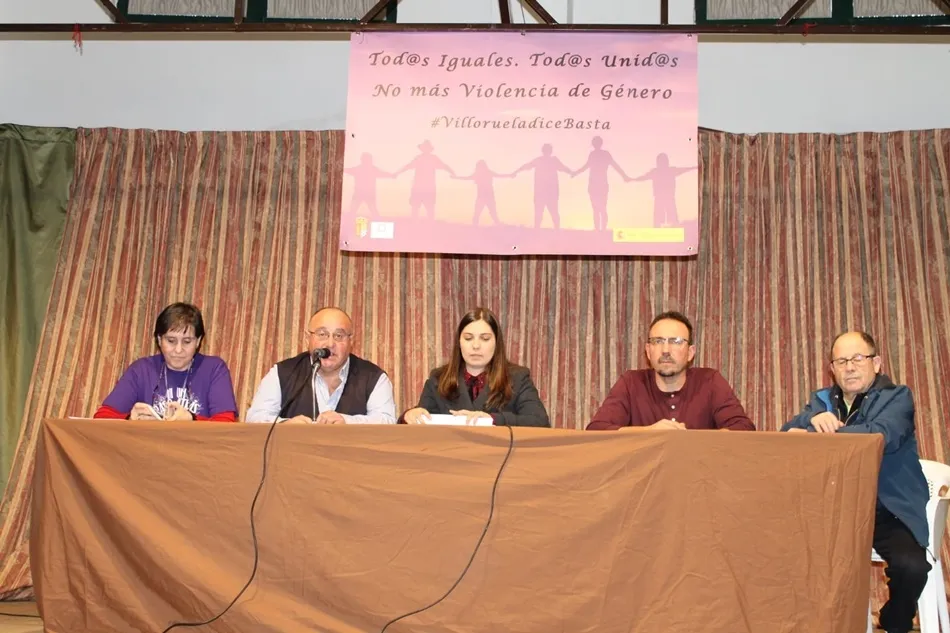 ?Todos unidos. Todos iguales. No más violencia de género?. Este es el lema que ha presidido el acto que ha tenido lugar este sábado en el multiusos Bernardo Cuesta de Villoruela contra la violencia machista.