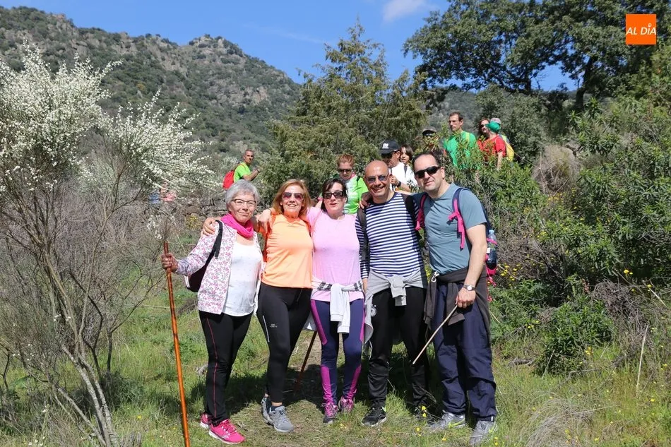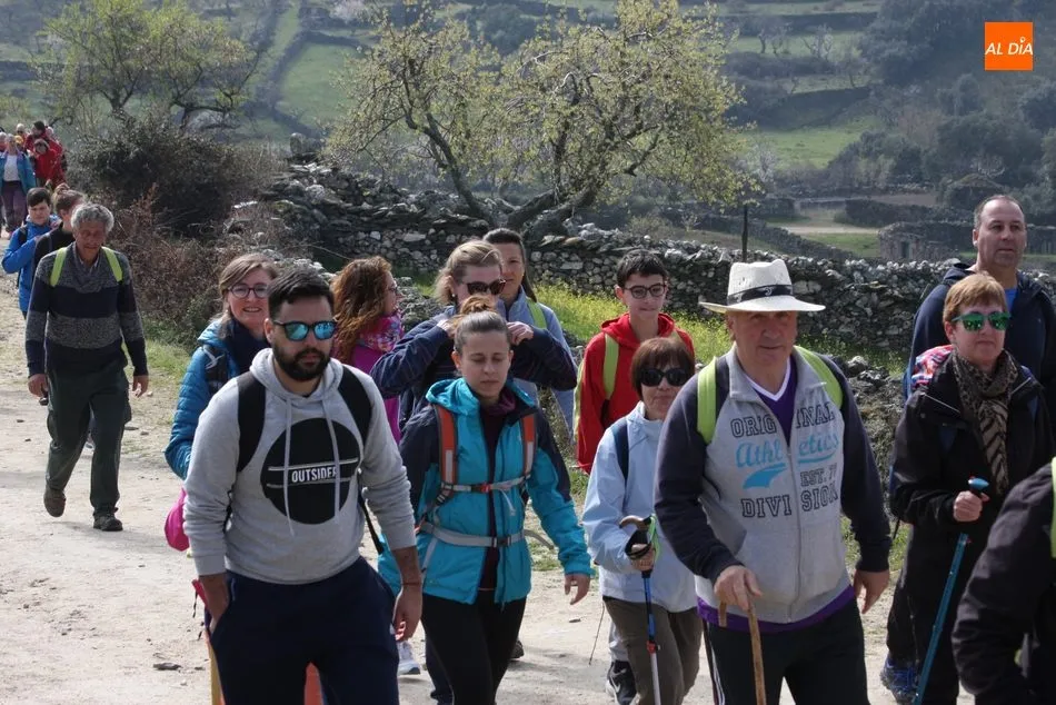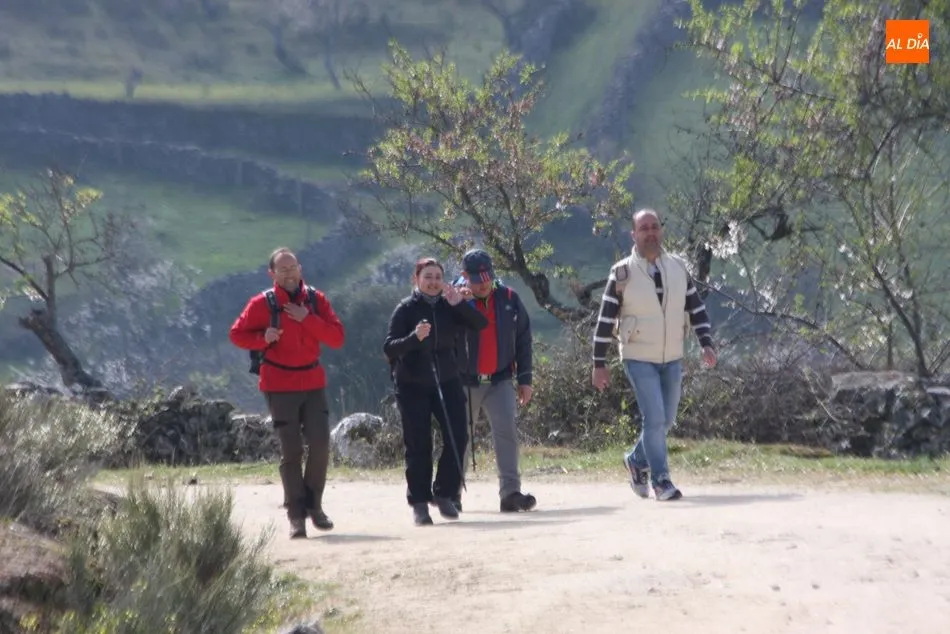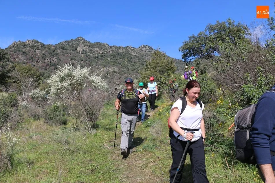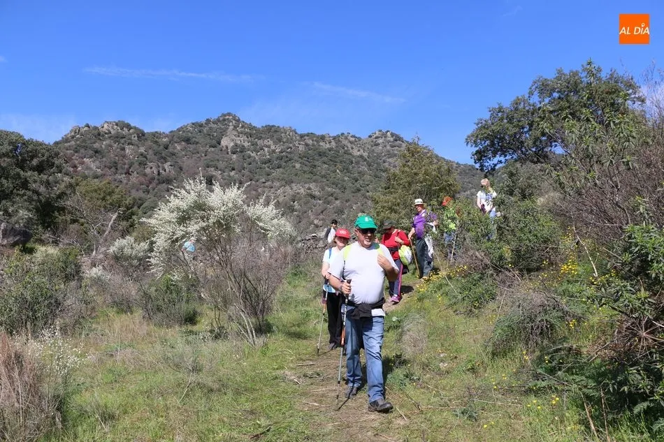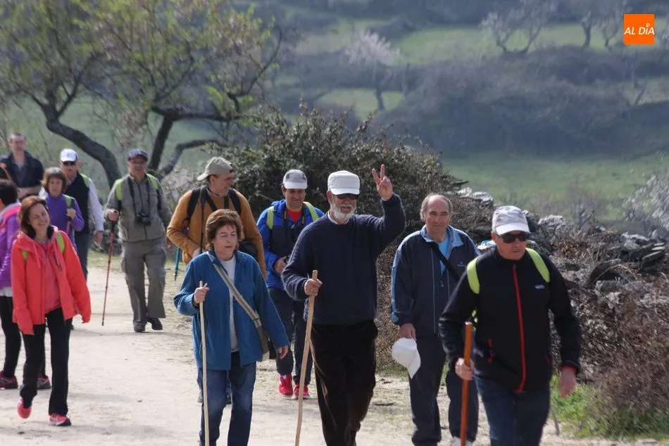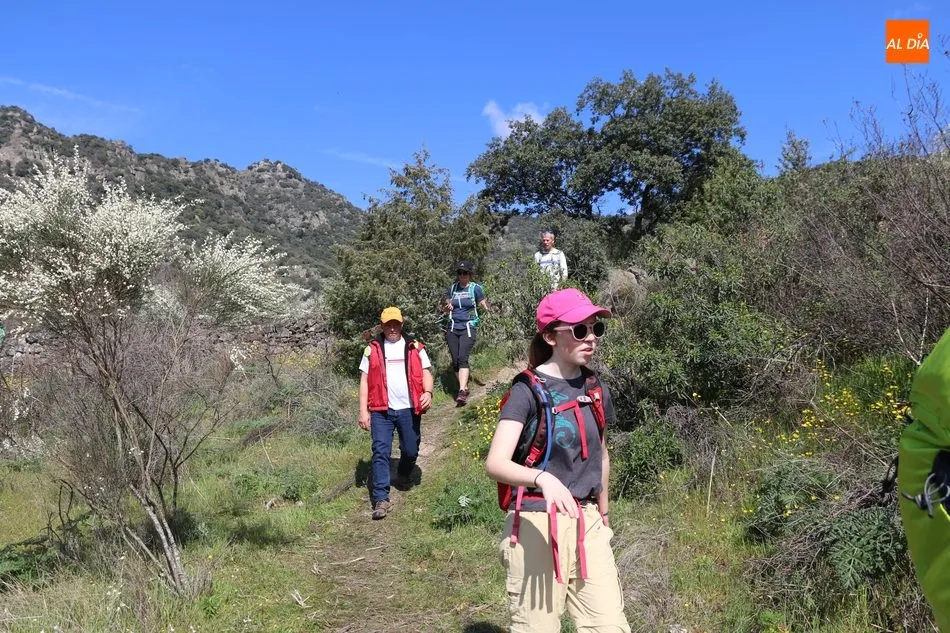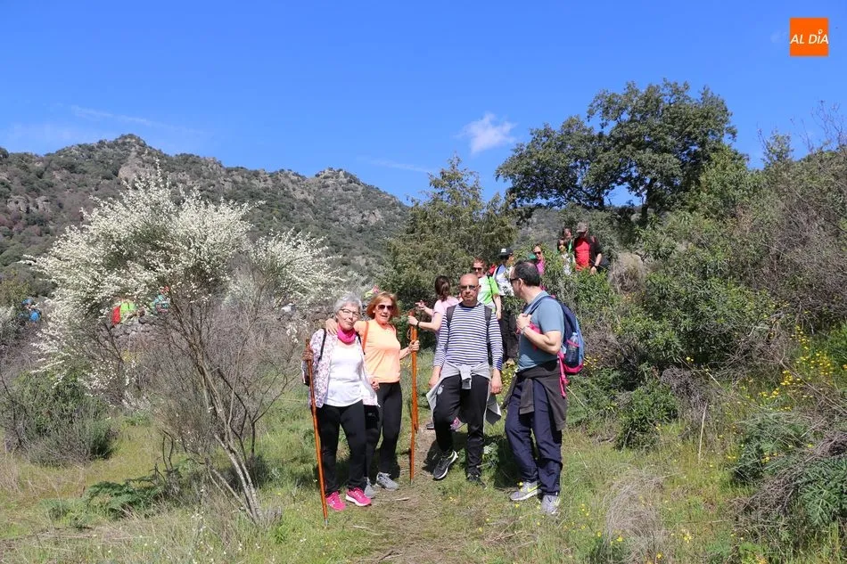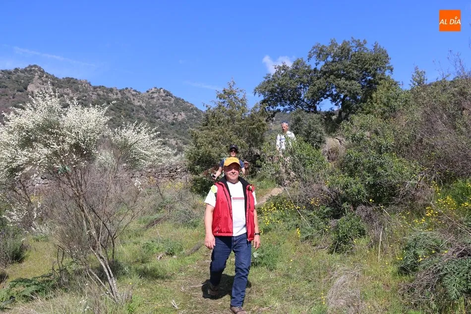 Los senderistas comenzaban su andadura camino hacia el Caño el Sierro a las 11 de la mañana, donde pudieron admirar los primeros almendros en flor que salpican de colorido el paisaje arribeño. Siguiendo los pasos de los ancestros por antiguas calzadas empedradas y serpenteantes senderos, la ruta se adentraba con dirección al Molino ?la Luisa?, antiguo molino harinero rehabilitado, y que marca el camino hacia el Monte Gudín, donde se halla una antigua casa y varios corrales que fueron utilizados hasta no hace mucho por los cabreros arribeños.