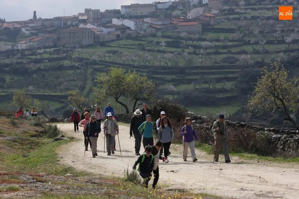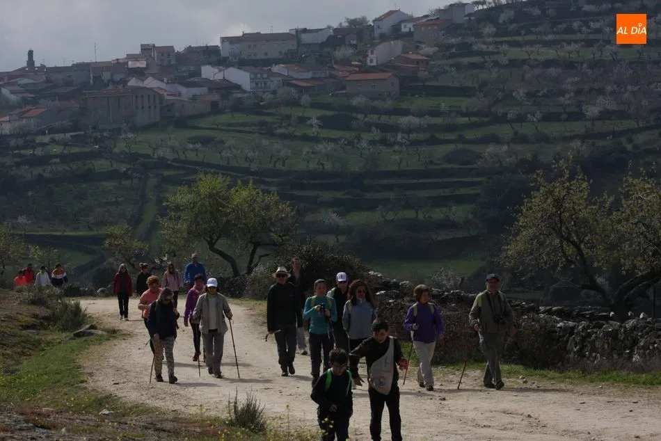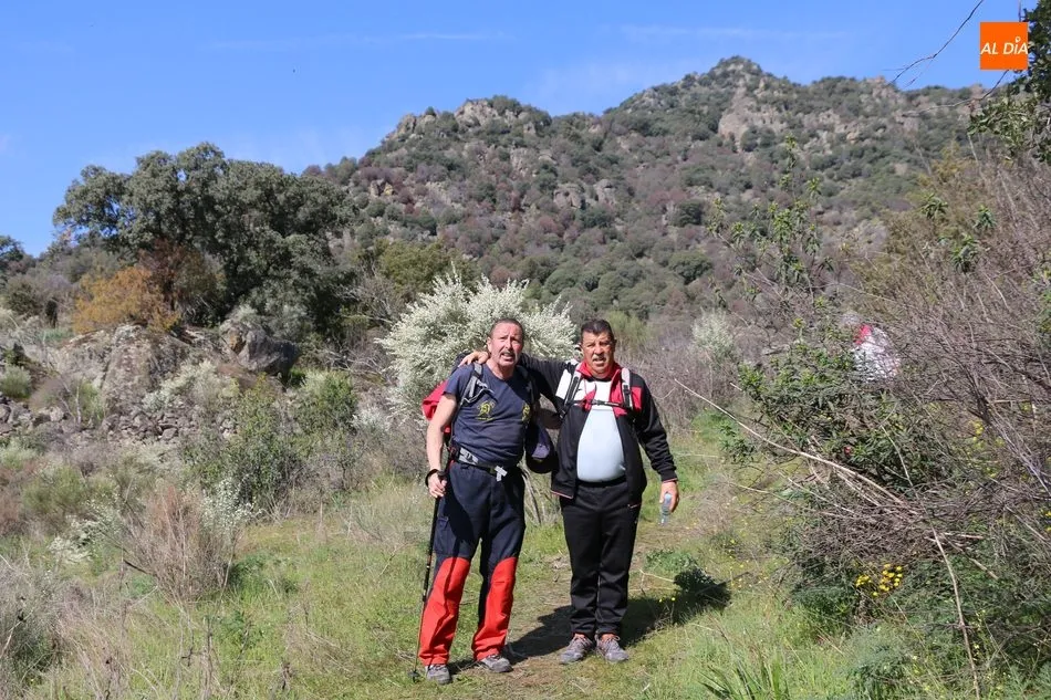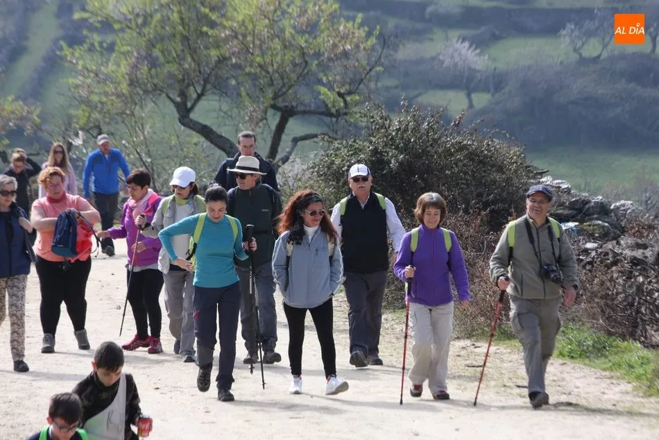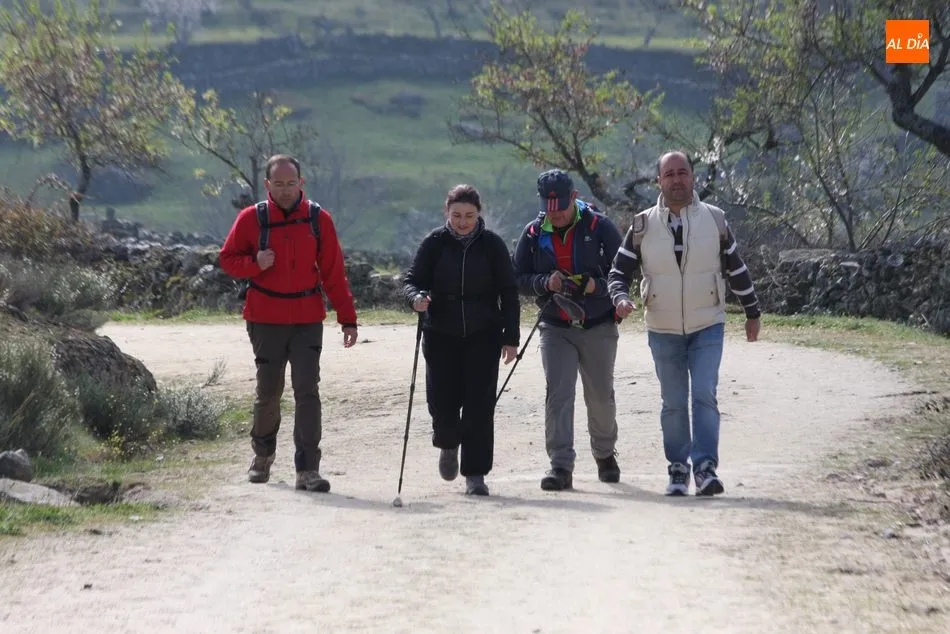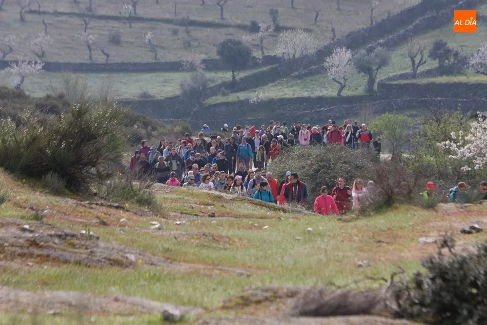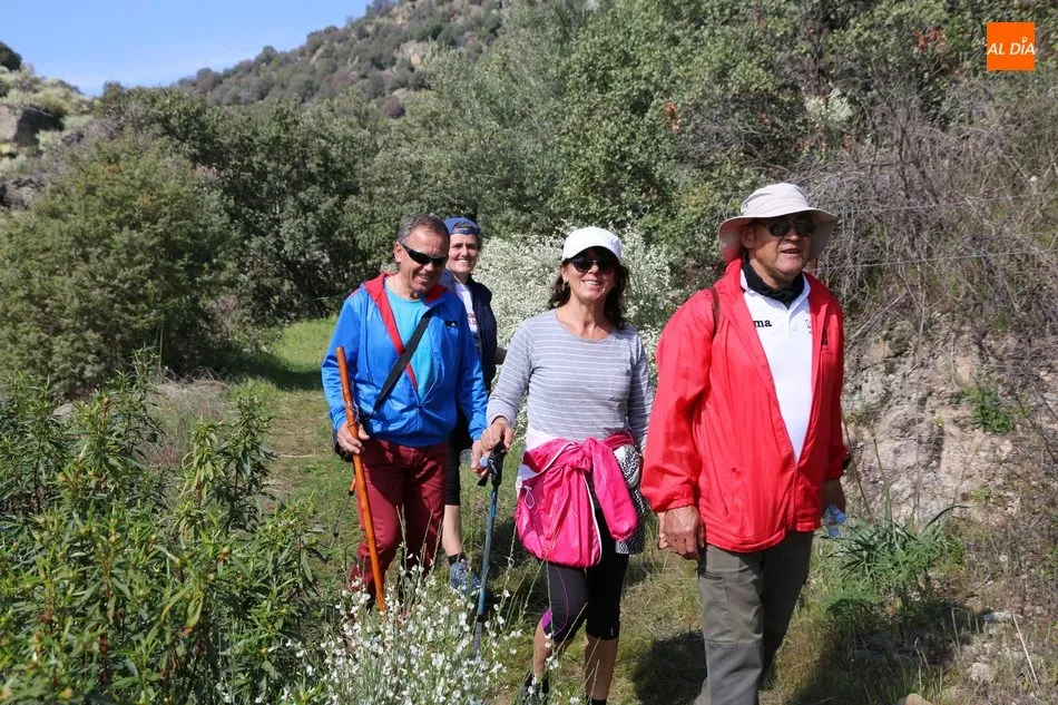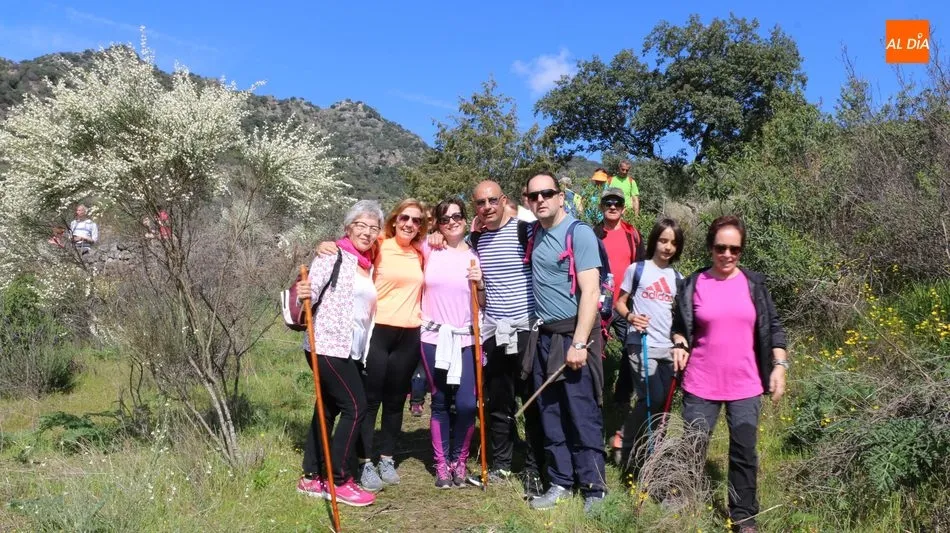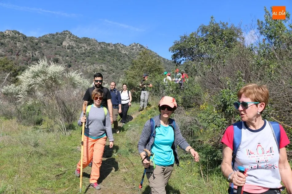 Los senderistas comenzaban su andadura camino hacia el Caño el Sierro a las 11 de la mañana, donde pudieron admirar los primeros almendros en flor que salpican de colorido el paisaje arribeño. Siguiendo los pasos de los ancestros por antiguas calzadas empedradas y serpenteantes senderos, la ruta se adentraba con dirección al Molino ?la Luisa?, antiguo molino harinero rehabilitado, y que marca el camino hacia el Monte Gudín, donde se halla una antigua casa y varios corrales que fueron utilizados hasta no hace mucho por los cabreros arribeños.