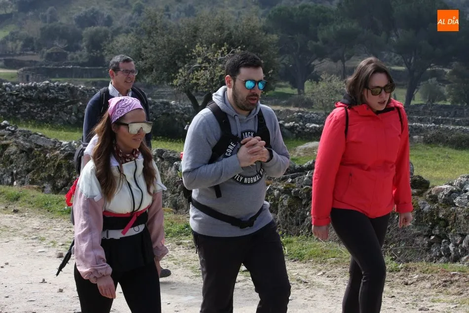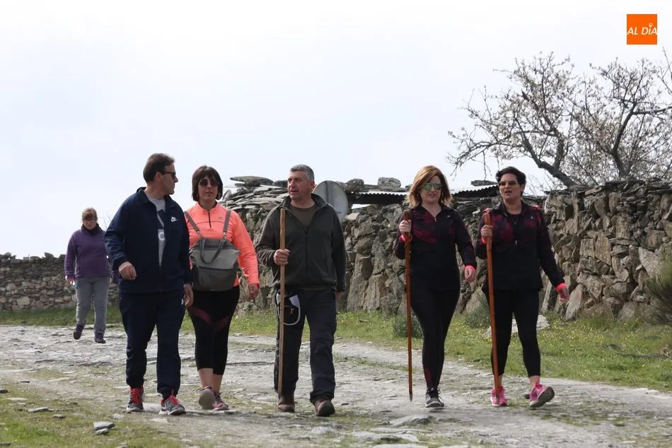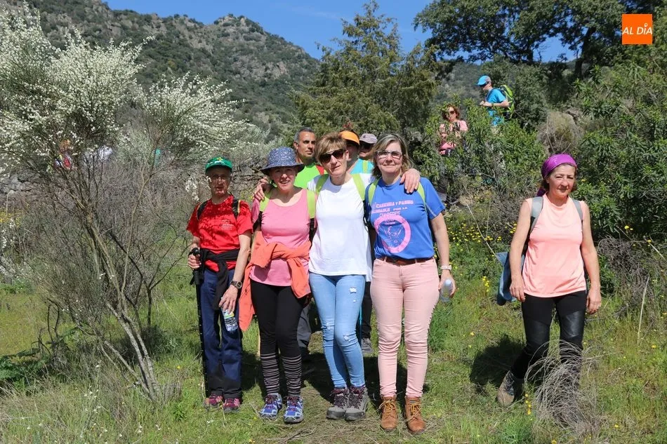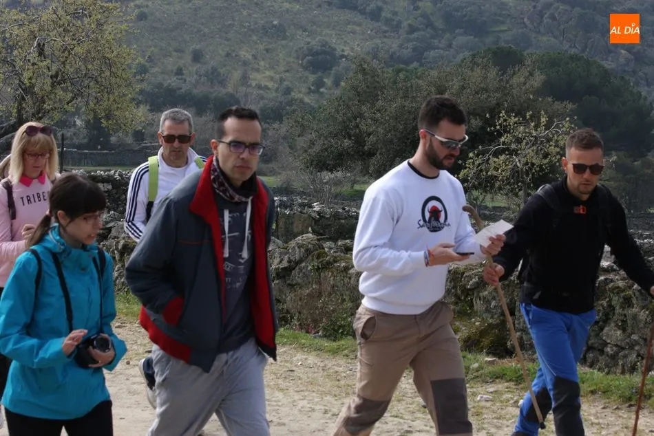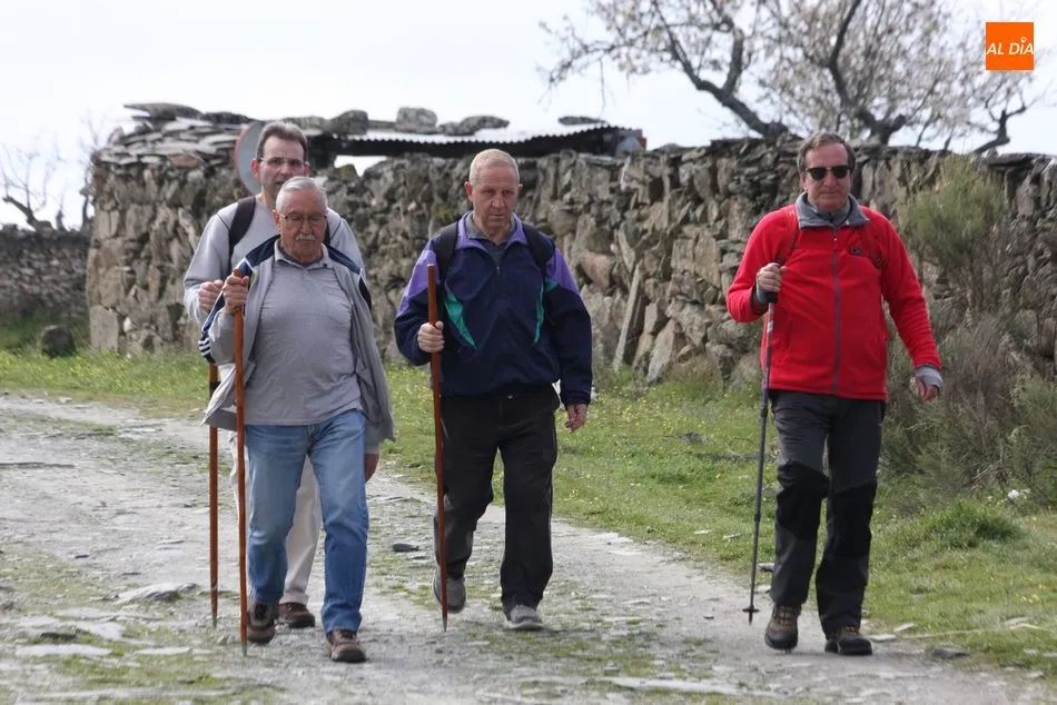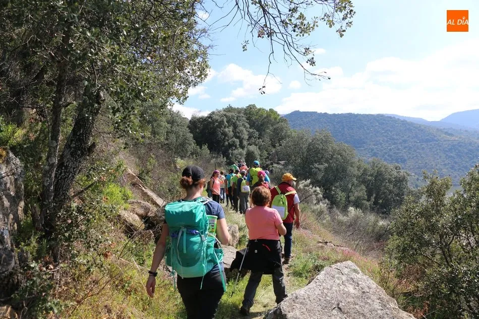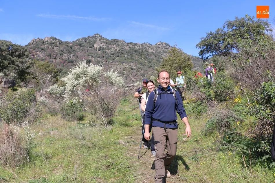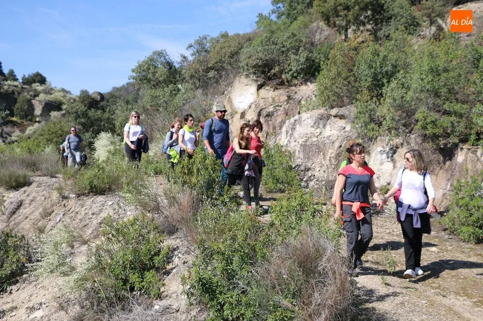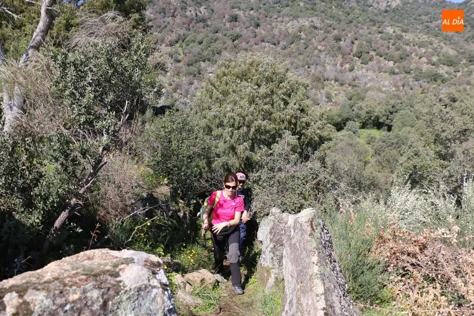 Los senderistas comenzaban su andadura camino hacia el Caño el Sierro a las 11 de la mañana, donde pudieron admirar los primeros almendros en flor que salpican de colorido el paisaje arribeño. Siguiendo los pasos de los ancestros por antiguas calzadas empedradas y serpenteantes senderos, la ruta se adentraba con dirección al Molino ?la Luisa?, antiguo molino harinero rehabilitado, y que marca el camino hacia el Monte Gudín, donde se halla una antigua casa y varios corrales que fueron utilizados hasta no hace mucho por los cabreros arribeños.