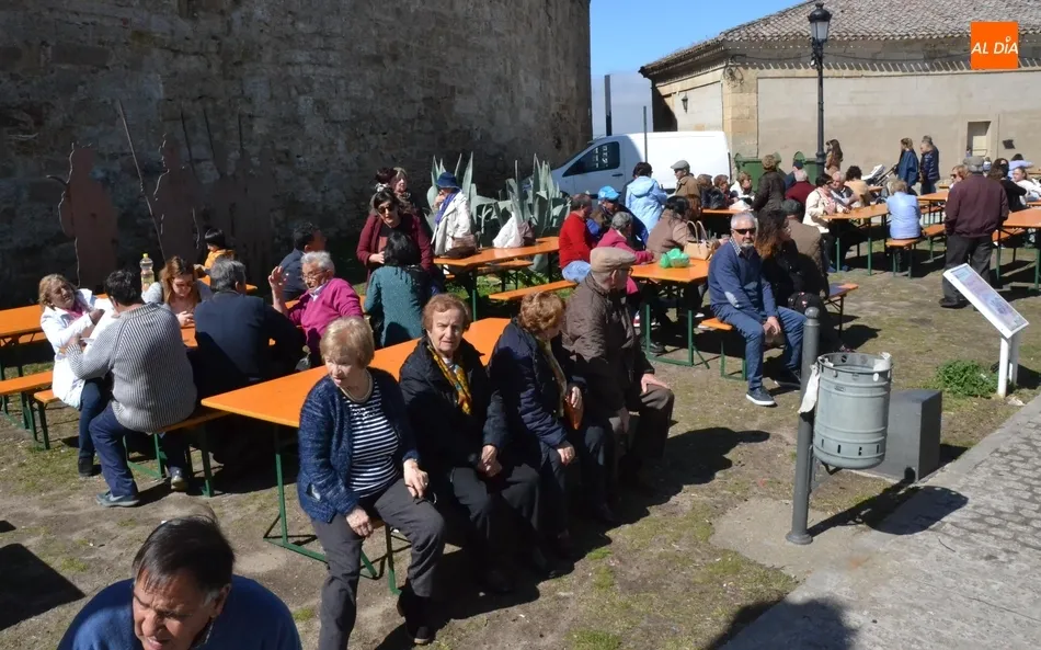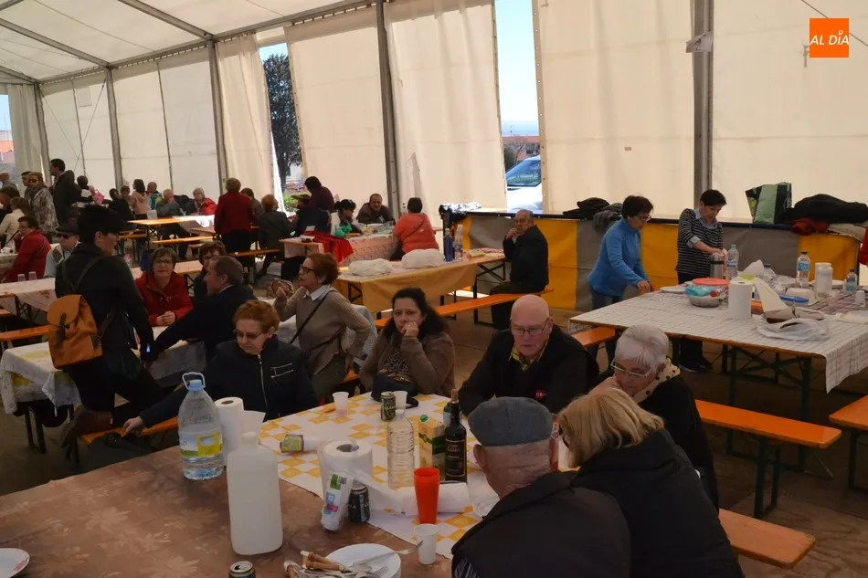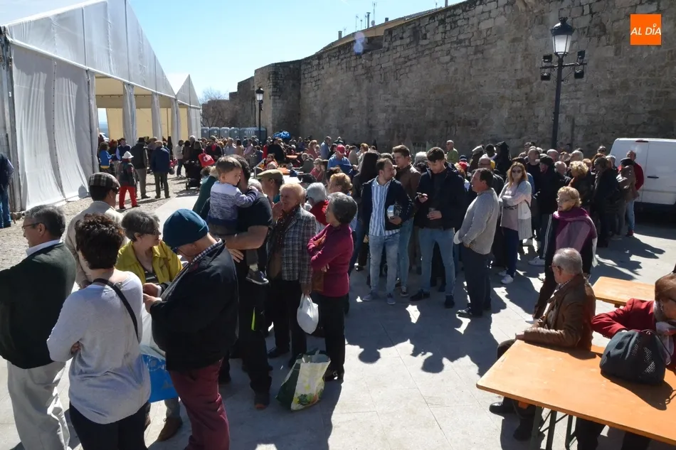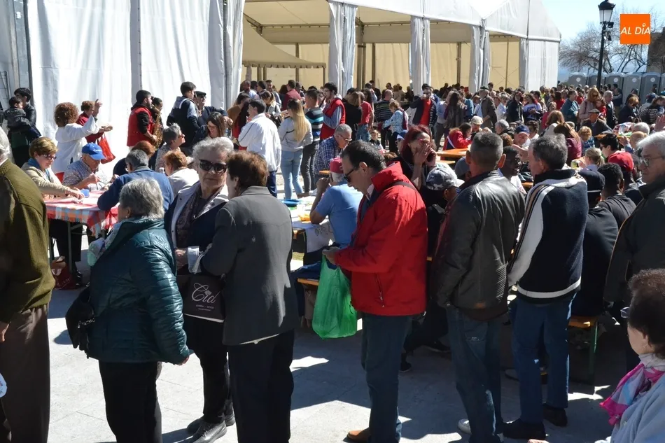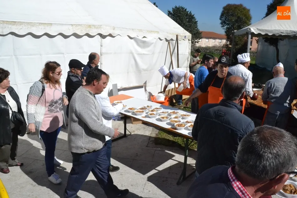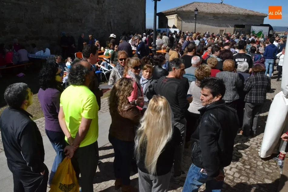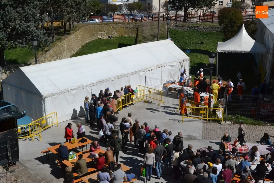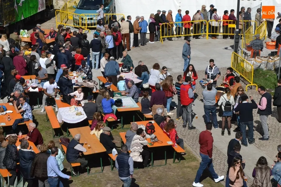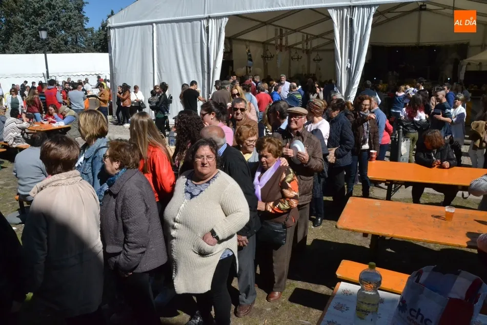 Aunque había comida ?para todos?, algunos debían tener bastante hambre ya que estuvieron haciendo cola un buen rato antes de que comenzase el reparto, que este año arrancó más pronto de lo habitual. En todo caso, la espera hasta ese momento de empezar a comer fue animada por la Charanga Infantil Los Bemoles, que estuvo animando el ambiente con sus canciones.