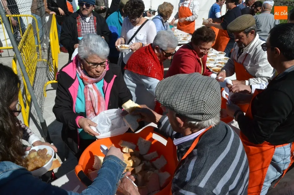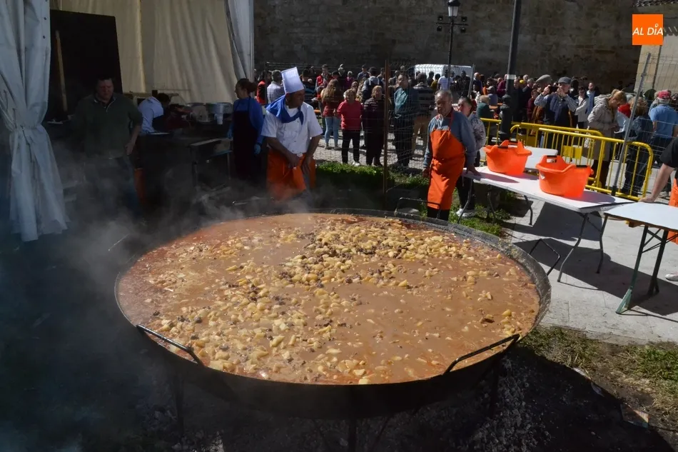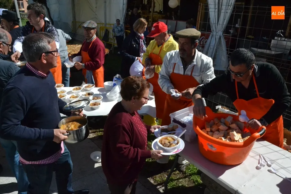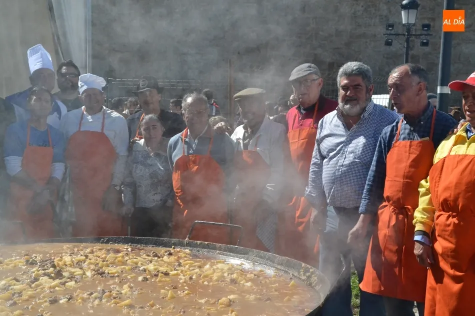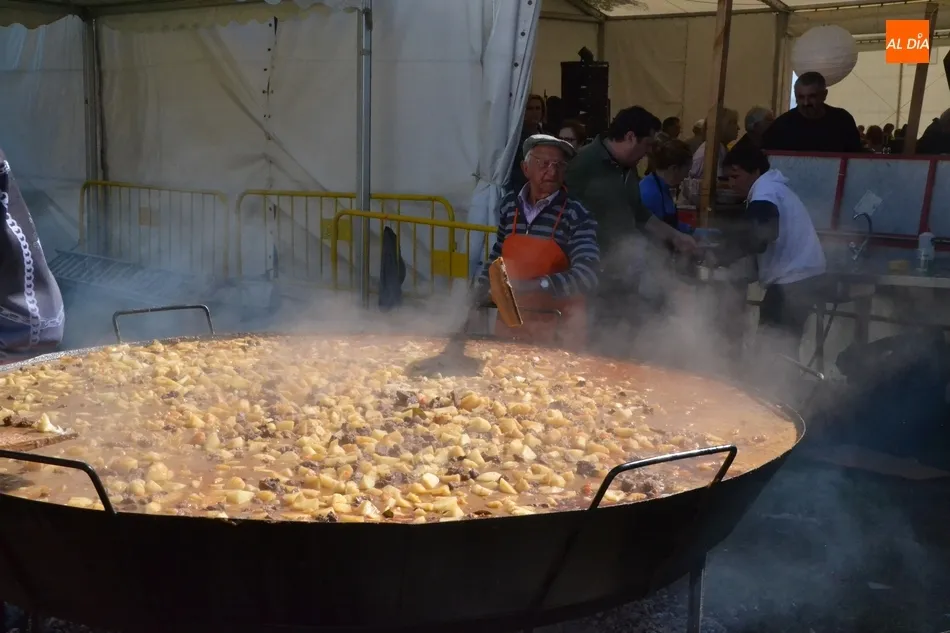 Como publicamos en la jornada del sábado, ese guiso se ha elaborado con 600 kilos de patatas y 400 kilos de carne (procedente de dos de los novillos a los que dieron muerte los chavales del Bolsín). La comida fue repartida en platos de plástico, aunque algunas personas optaron por coger las raciones correspondientes en cazuelas o tuppers, para llevarlo más cómodamente o bien hasta las mesas donde estaban o bien a sus casas.