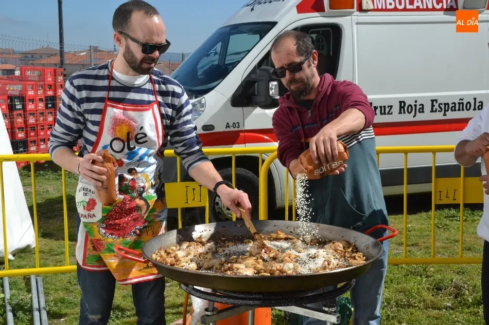 Por allí se fueron repartiendo familias, peñas o grupos de amigos, que incluso aprovecharon la espera hasta que llegó la hora del reparto de la comida jugando a las cartas. En lo que a peñas se refiere, destaca la presencia de La Polémika, que estuvieron preparando una paella independiente, o la de Arena en el Registro, que llevaron uno de los vehículos de su FarinatoFest.