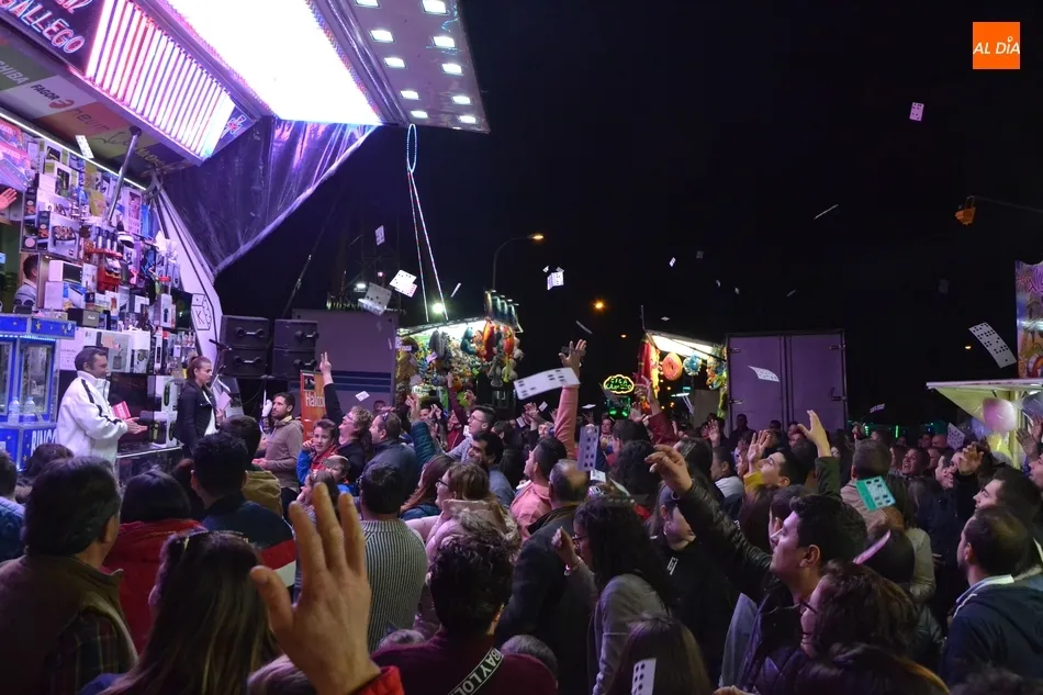 Pese a que no se marcharán hasta dentro de siete días, el Bingo fue el gran protagonista de la tarde dominical con sus partidas especiales, en las que se pusieron en juego tanto una tele de gran tamaño como un viaje, todo ello en dos partidas consecutivas. Ambos premios le tocaron a sendas mirobrigenses. Como remate de estas partidas, se realizó el clásico lanzamiento al aire simultáneo de los cartones con los que se jugó.
