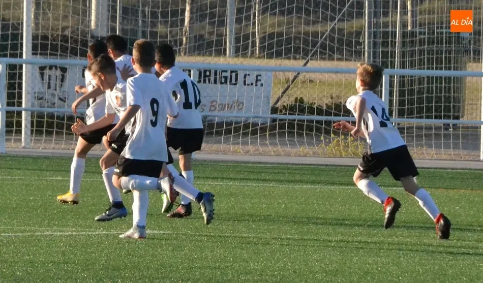 El Alevín A del Ciudad Rodrigo amplió en la mañana del domingo a un póker el número de victorias logradas a lo largo del fin de semana por los equipos de fútbol 7 de la cantera del Club mirobrigense en los Campos de Toñete.