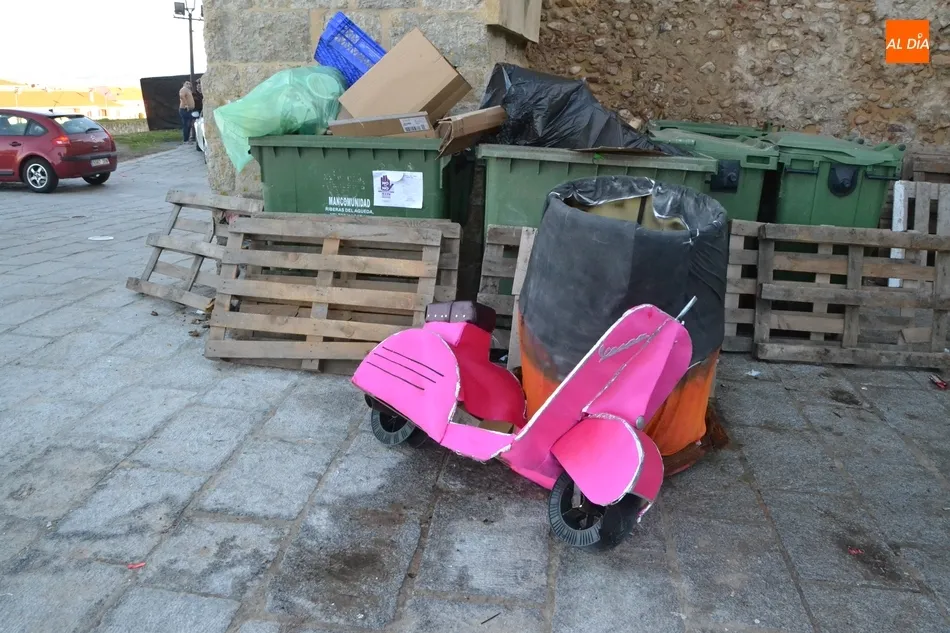 En esos momentos, en el Paseo ya no estaban todas las casetas: en la galería de imágenes se puede comprobar que ya faltaba una de las construidas por las propias peñas. Producto también de ese vaciado, en los contenedores más cercanos se acumulaban todo tipo de restos de basura, incluido una de las vespas que fueron usadas como disfraz carnavalero por parte de una peña.