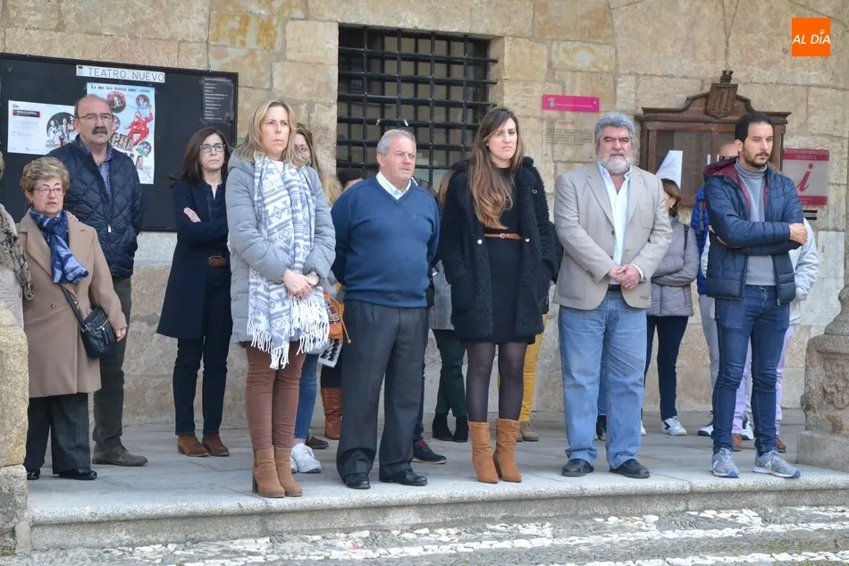 El minuto de silencio en Miróbriga tuvo lugar a las puertas de la Casa Consistorial, contando con una escasa asistencia: varios miembros de la Corporación Municipal encabezados por el alcalde Juan Tomás Muñoz, algunos trabajadores del Ayuntamiento, un puñado de mirobrigenses y un par de turistas.