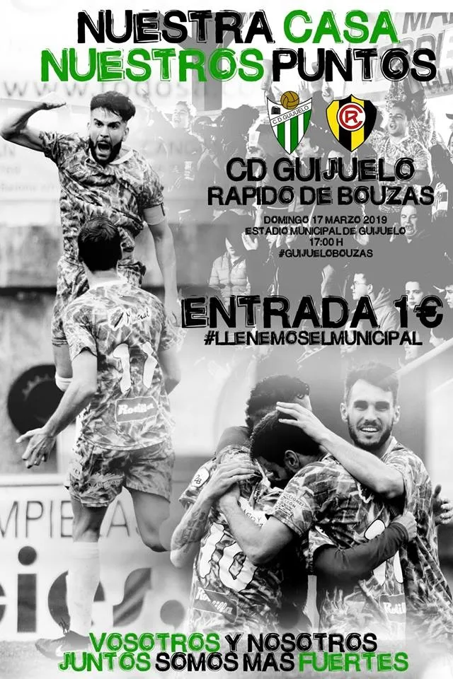 El Club Deportivo Guijuelo quiere a la afición a su lado en un intento de seguir la racha positiva que vive desde hace más de un mes. Tras el empate de ayer en Galicia, el equipo quiere una nueva victoria el próximo domingo, por lo que ha pu