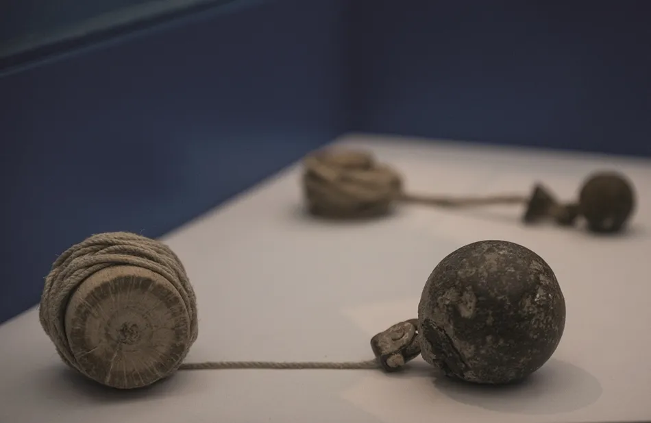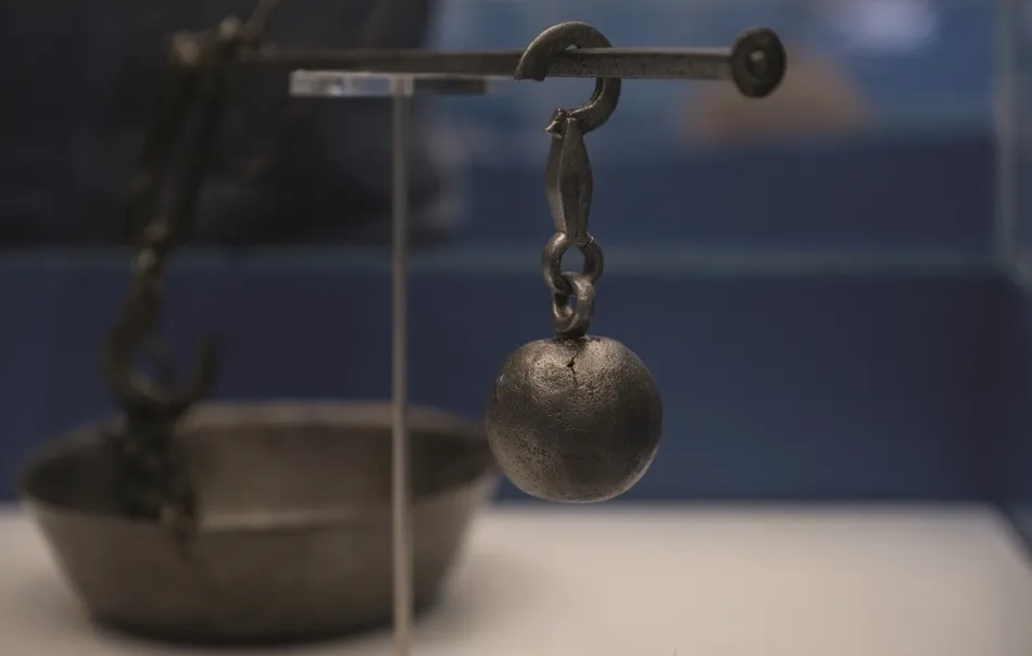 J.R.C.C.: La exposición cuenta la historia de Ciudad Rodrigo desde 1808 hasta el final de la Guerra en el 1813. Sufrió dos sitios terribles y en su entorno concurrieron algunas de las grandes batallas de la Guerra de la Independencia. Tenemos cartas, mapas, documentos, grabados, armas? pero quizás lo más curioso sea la parte que nos enseña que lo que se fabrica para la guerra se recicla para la paz. En Ciudad Rodrigo se utilizaron las balas de cañón, las bayonetas. Mirad, aquí está el peso de una romana o una plomada de albañil fabricadas con una bala y un instrumento para atar las caballerías al suelo realizado con una bayoneta.