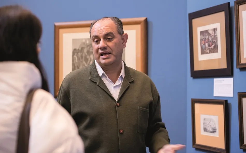 J.R.C.C.: Goya fue el primer reportero de guerra. Utilizó la técnica del grabado porque quería que Los Desastres se difundieran. No se hizo la tirada en vida, pero era su deseo que representaran la barbarie, la sinrazón del hombre. Dibujó lo que él veía, y no solo criticó los excesos del ejército napoleónico, sino la ignorancia del pueblo español. Son 82 planchas de grabado que se convirtieron en láminas, en ocho tiradas, a partir de 1863. Las que tenemos aquí salen de esas planchas originales de Goya grabadas en 1923, pertenecen a la quinta edición. Si os fijáis, los títulos y representaciones son aterritoriales, no muestran hechos y lugares concretos, sino la barbarie de cualquier guerra. Sus títulos son irónicos y dolorosos: mirad estos cuerpos en sacos, el grabado se llama ?Las camas de la muerte?.