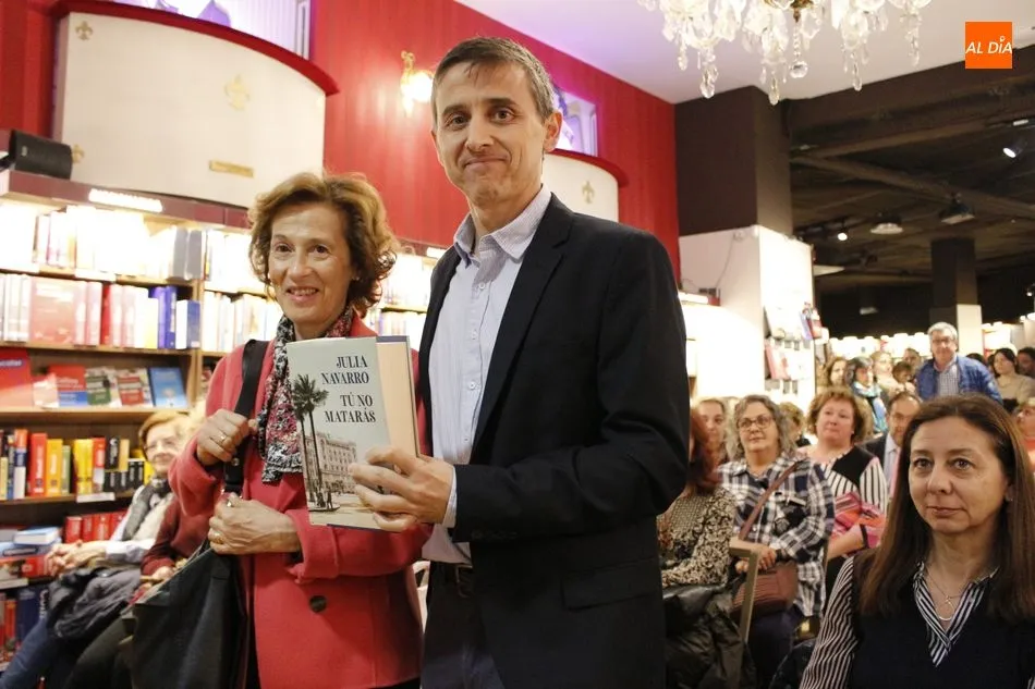 La escritora Julia Navarro ha presentado este martes en Salamanca su última novela ?Tú no matarás?. El acto ha tenido lugar en la Librería Santos Ochoa (Gran Vía, 12) y ha sido un encuentro con los lectores que ha permitido al numeroso público asistente conocer de primera mano esta nueva publicación, una historia desgarradora que nos habla de la culpa, la venganza, el peso de la conciencia y los secretos que nos acompañan y condicionan nuestras decisiones.