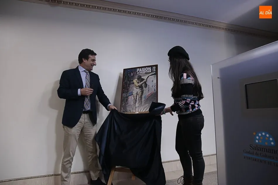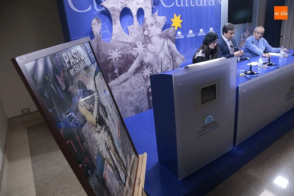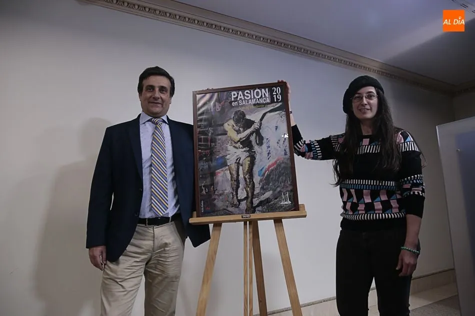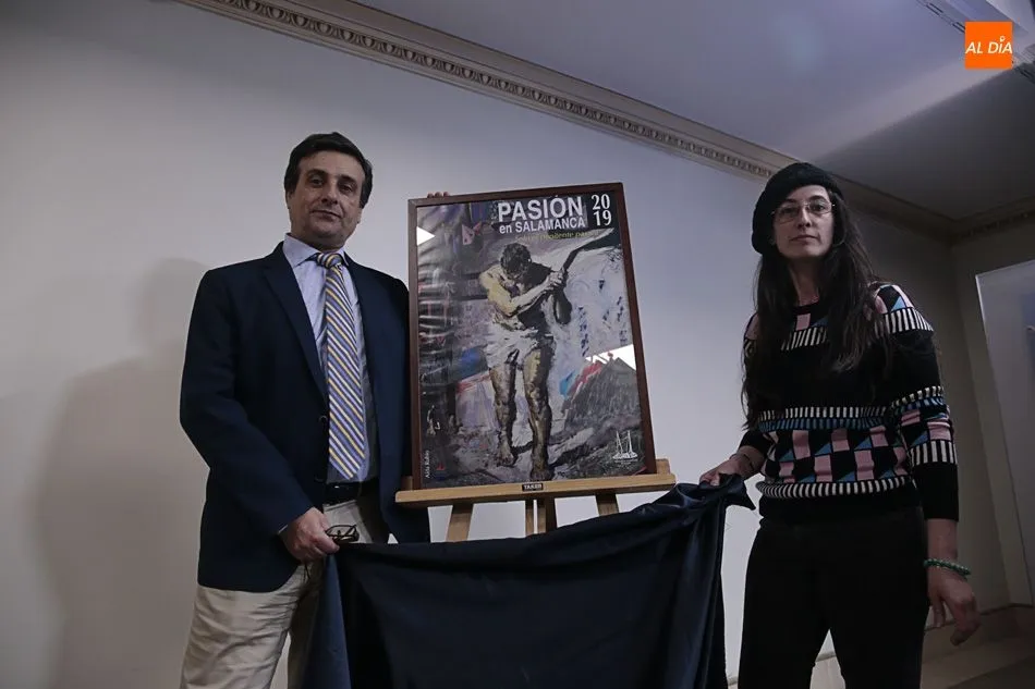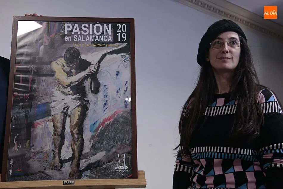 La Tertulia Cofrade Pasión ha presentado esta tarde, en la Sala de la Palabra del Teatro Liceo de Salamanca, el cartel anunciador de la Pasión en Salamanca 2019. Cada año, la entidad encarga su realización a un artista de del entorno para así anunciar la Semana Santa a través del arte contemporáneo. En esta ocasión, la cartelista es Aída Rubio, profesora en la Escuela de Bellas Artes San Eloy, que cuenta con una amplia trayectoria, con destacadas exposiciones en la ciudad y premios.