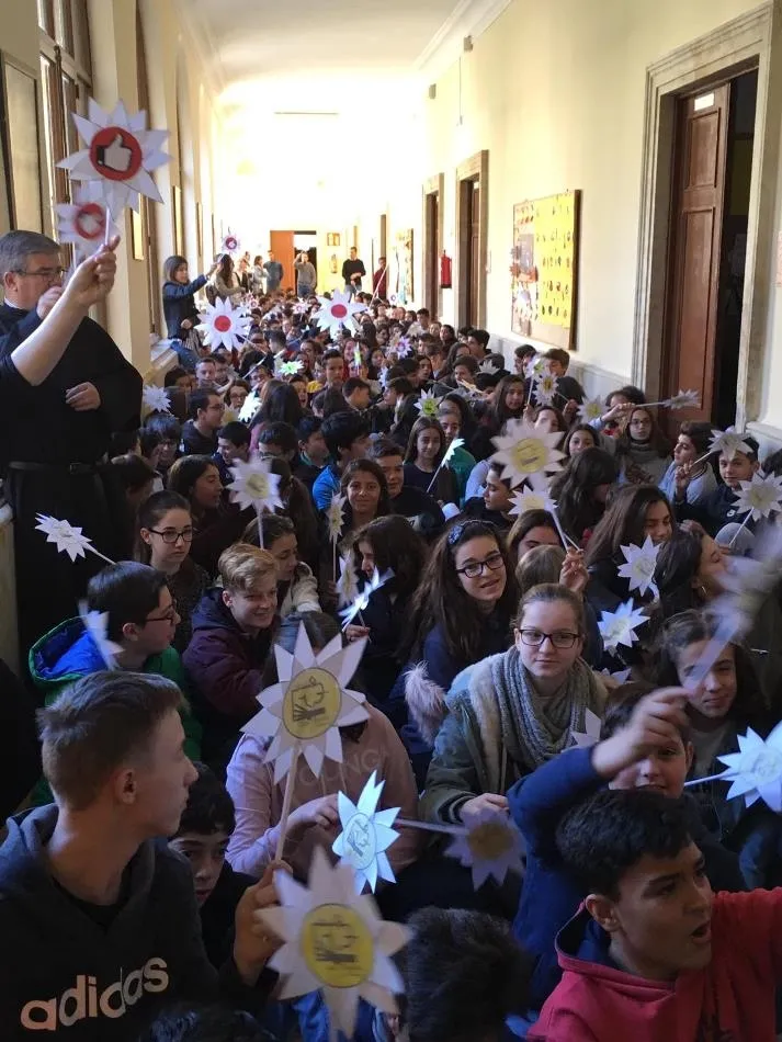 Con motivo del Día de Escuelas Católicas, alumos y docentes del colegio San Agustín han participado en un acto El colegio San Agustín se une al Día de las Escuelas Católicas  | Imagen 1conmemorativo, que tenía lugar en los pasillos del centro, con el lema ?Formamos parte de tu vida?