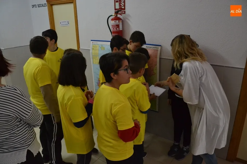 Para rematar estas jornadas, el IES Fray Diego Tadeo recibió a los alumnos del Colegio San Francisco (en dos turnos), y el IES Tierra de Ciudad Rodrigo a los del Colegio Miróbriga, en este caso en un único turno. En ambos centros se realizaron visitas similares a las de días anteriores, llevándose los alumnos pequeños obsequios e incluso algún premio por haber sido los mejores en completar la gymkana y los juegos planteados.