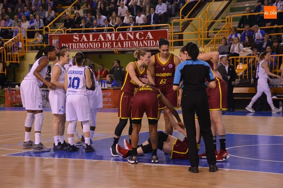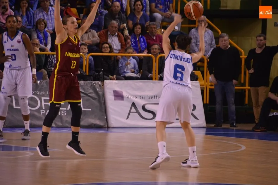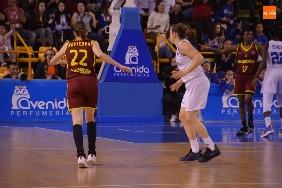 Fue en el segundo cuarto cuando Avenida consiguió marcharse en el marcador. Lo hizo en un primer término, pero el Nadezhda consiguió acercarse hasta el punto de dejar en nada esos buenos minutos de Avenida. Sin embargo, las salmantinos si pudieron abrir brecha en el marcador justo antes de llegarse al descanso. Loyd y Eldebrink, haciendo daño desde la línea de tres, permitieron al equipo de Salamanca marcharse con una ventaja de siete puntos al descanso y el objetivo de la remontaba en la cabeza.