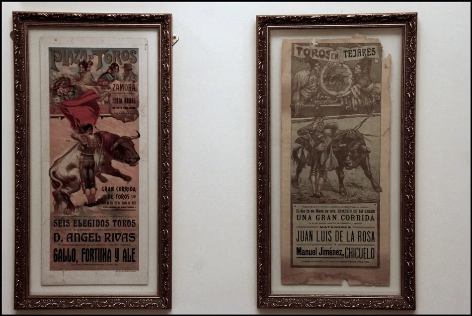 Salamanca está ligada al ganado, al toro. Pero las épocas cambian. Mira, aquí teníamos una colección de entradas de toros fantástica, todo el que venía nos dejaba su entrada aquí. Gracias a la gente hicimos una colección tremenda, pero durante una reforma se metió todo en una caja y se llevó a una fábrica de bolsos para que no molestara. Pues entraron a robar y ahí que se perdió la caja con las entradas, los programas, los carteles? claro que luego los peristas en el rastro lo vendían todo, la gente se enteró y se recuperaron muchas piezas y nos las fueron regalando.