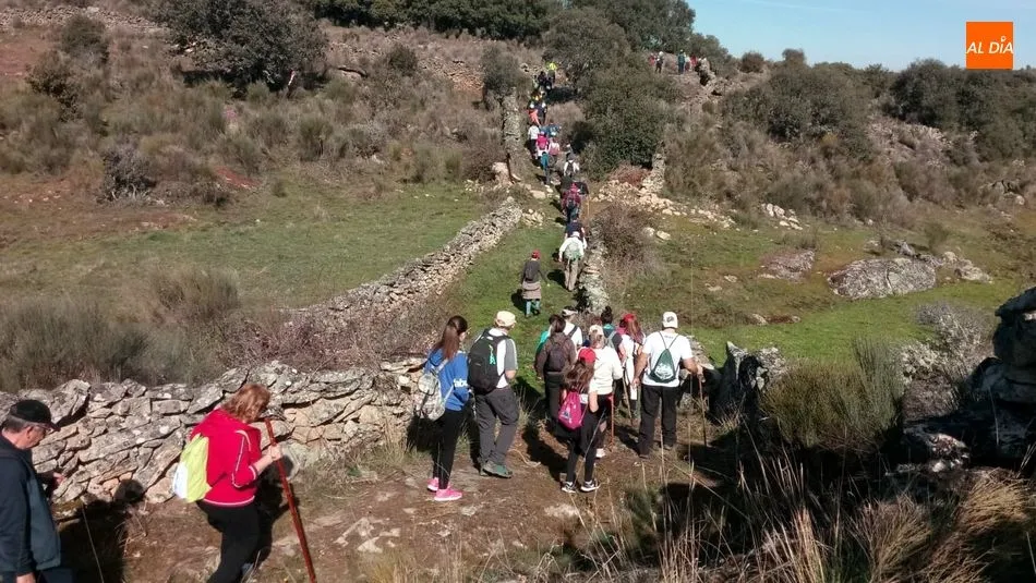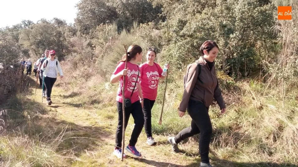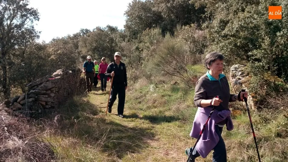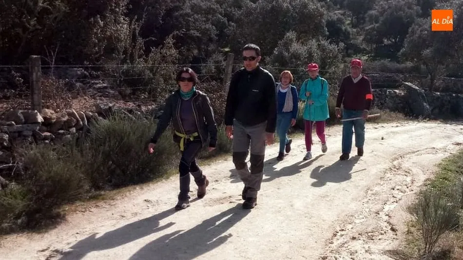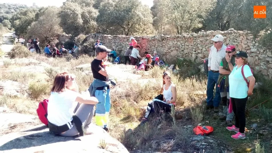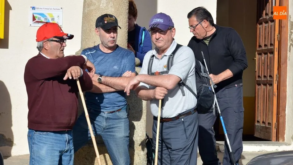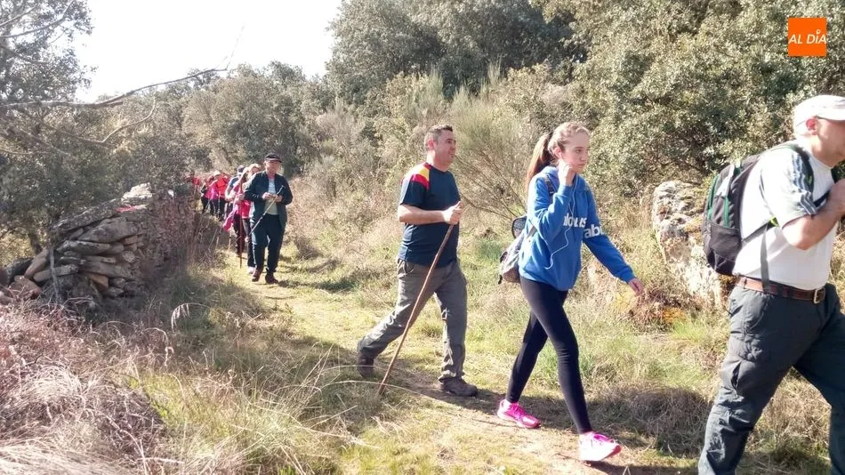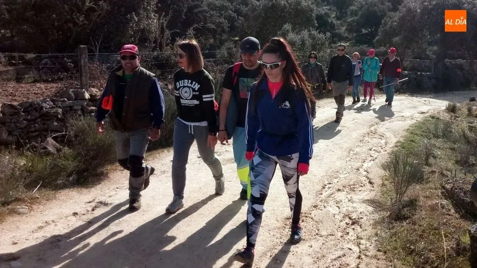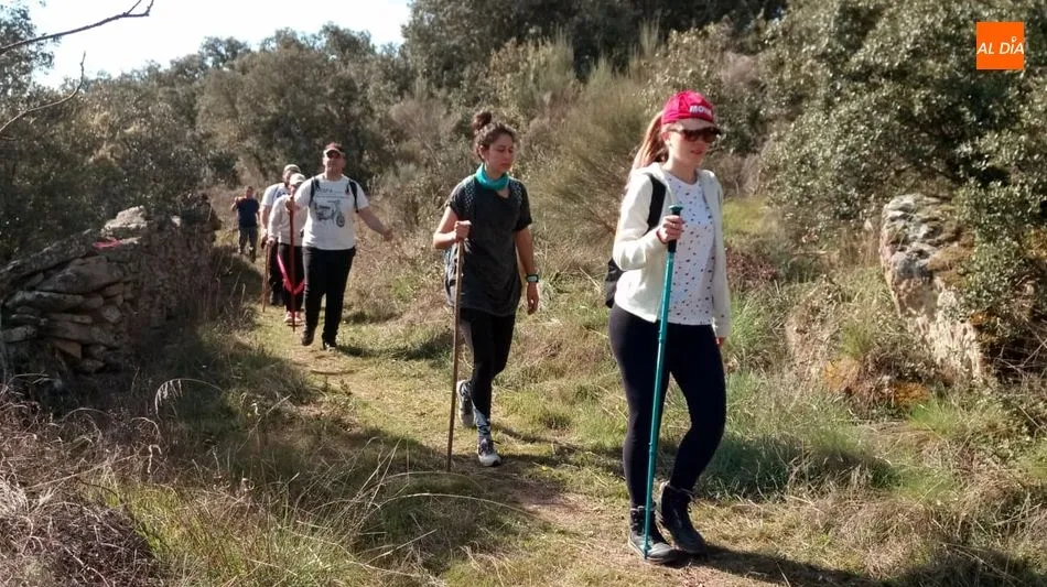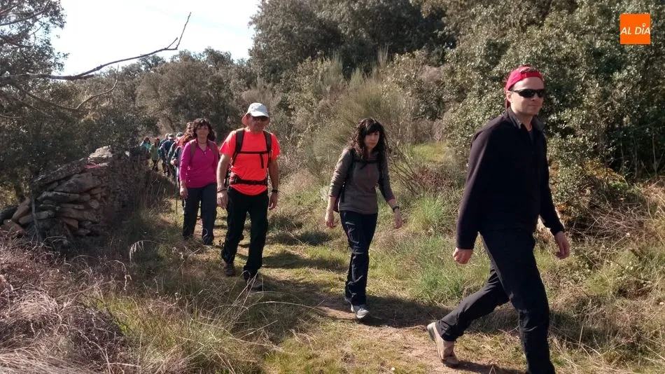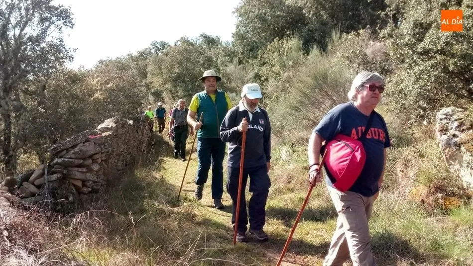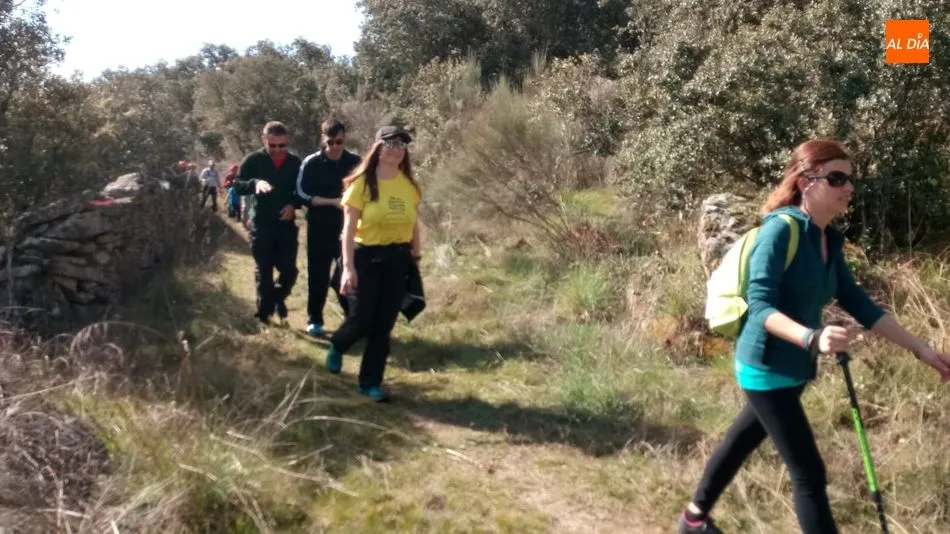 Los senderistas partieron a las 10.00 horas desde la Plaza de la localidad dispuestos a caminar durante más de cuatro horas en una agradable mañana de primavera, por caminos entre encinas y júmbrios y escobas rebosantes de color. Después de cruzar un regato, tomaron la senda del GR-14.1 (senda del Águeda) hasta llegar a la Vega del Morgáez. En la ribera de este río aún se conservan las construcciones de molinos y chozos en los que molturaba el trigo, aprovechando la fuerza motriz del agua.