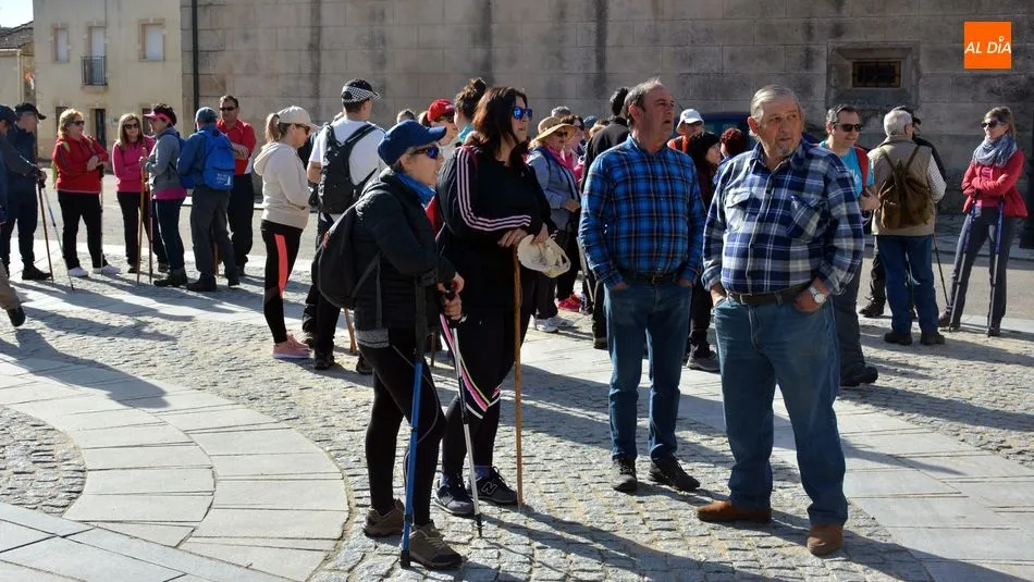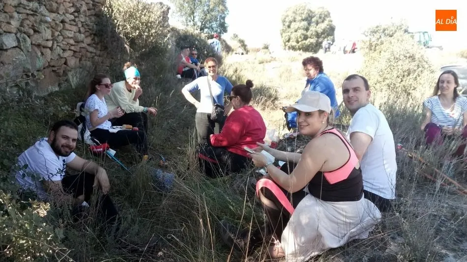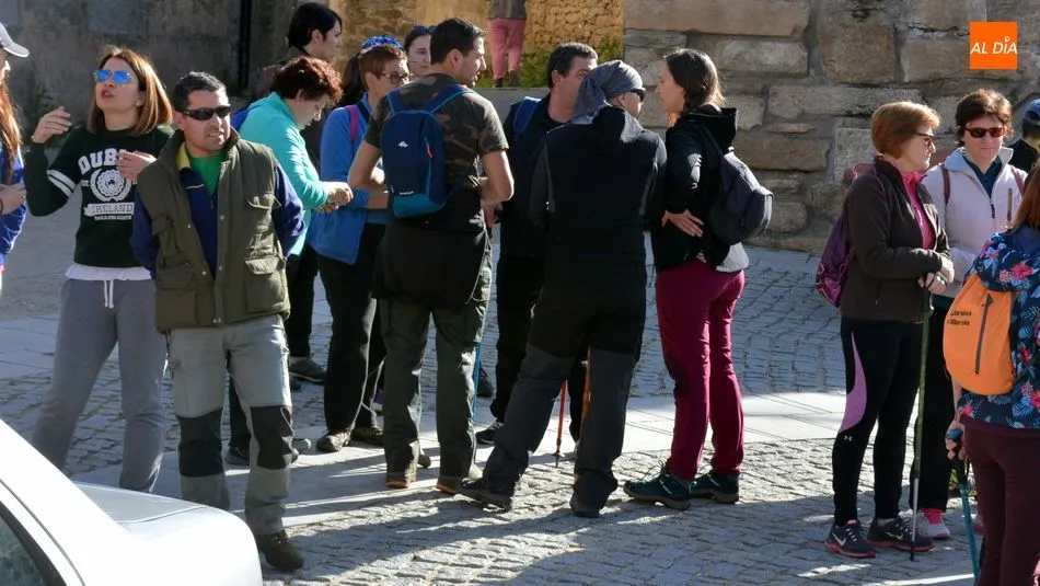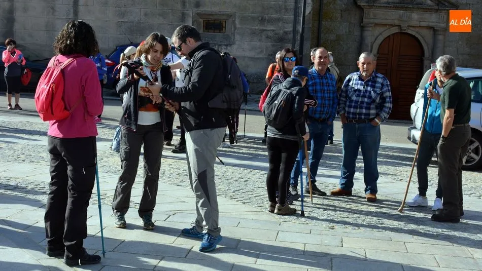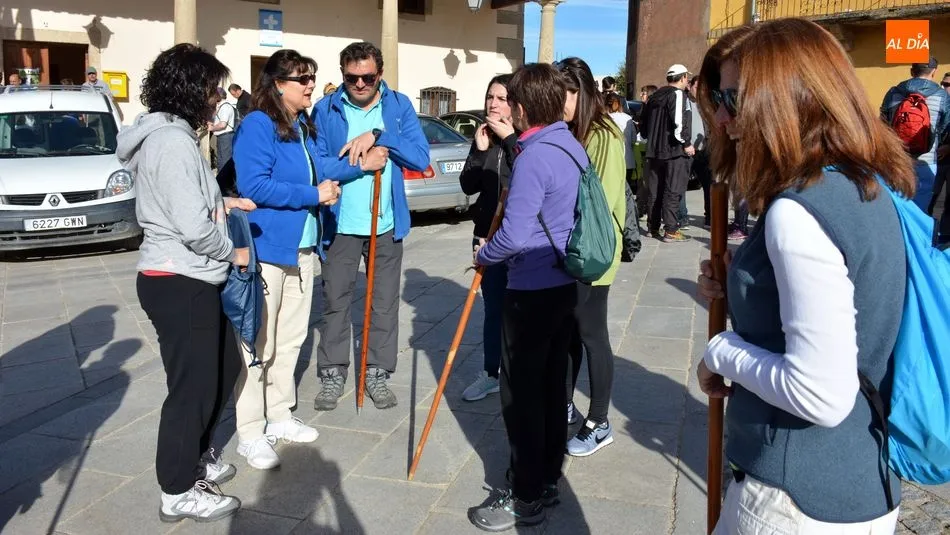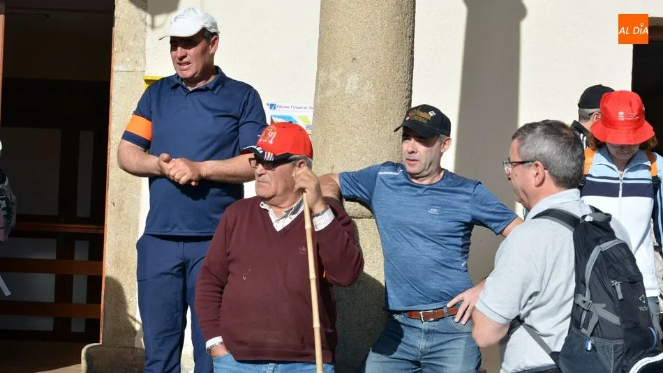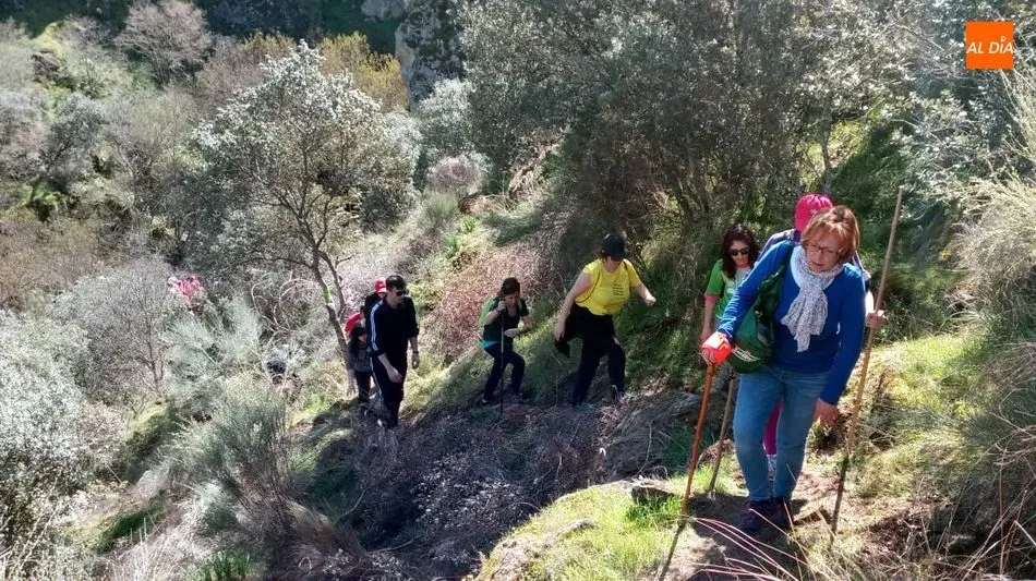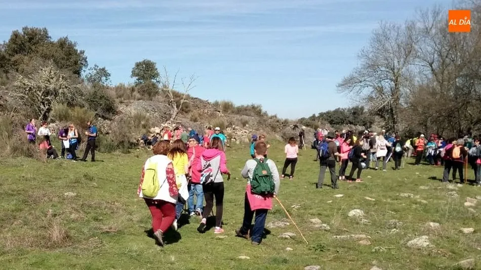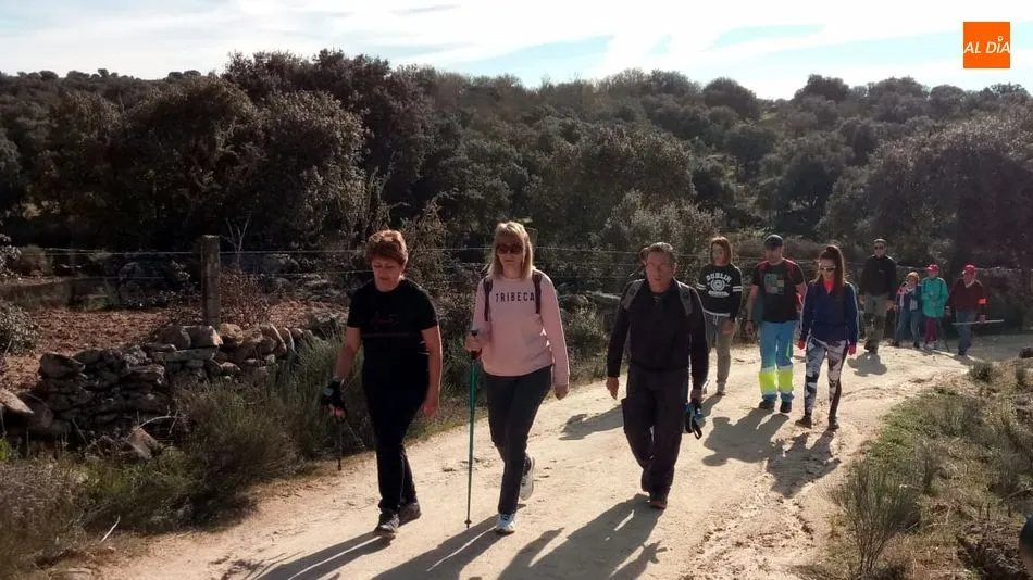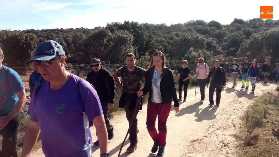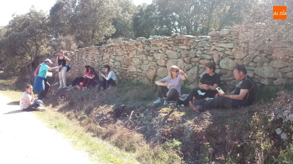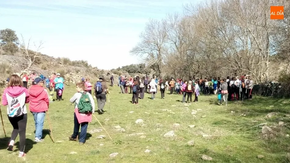 Los senderistas partieron a las 10.00 horas desde la Plaza de la localidad dispuestos a caminar durante más de cuatro horas en una agradable mañana de primavera, por caminos entre encinas y júmbrios y escobas rebosantes de color. Después de cruzar un regato, tomaron la senda del GR-14.1 (senda del Águeda) hasta llegar a la Vega del Morgáez. En la ribera de este río aún se conservan las construcciones de molinos y chozos en los que molturaba el trigo, aprovechando la fuerza motriz del agua.