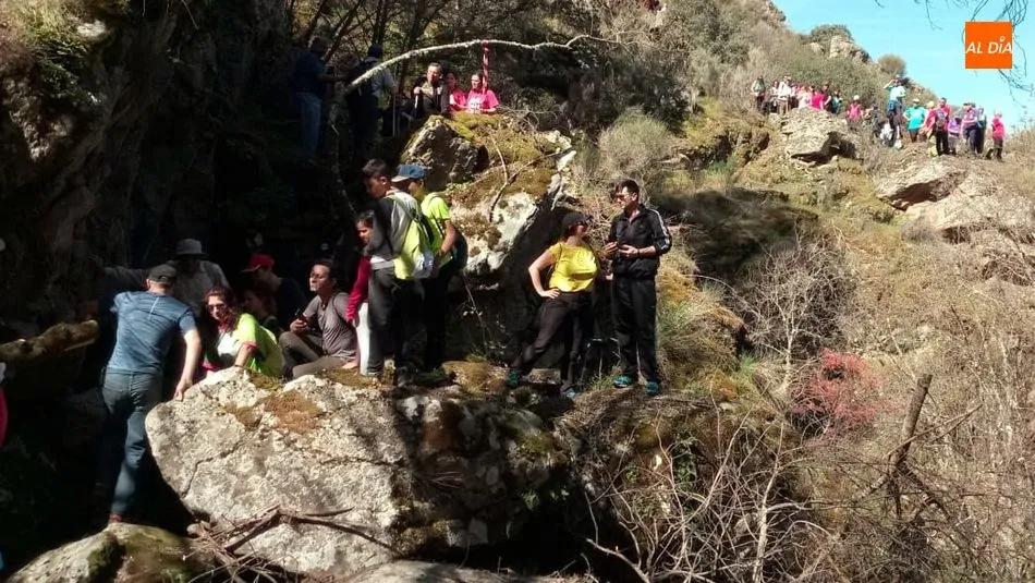 La III Ruta de Senderismo de Sobradillo ha brindado a las más de 200 personas que han acudido esta mañana a la localidad, la oportunidad de recorrer un ruta inédita por una de las zonas más agrestes y desconocidas del Parque Natural Arribes del Duero, un camino de 14 kilómetros que les ha permitido descubrir y admirar las dos principales cascadas del río Morgáez, La Diabla y el Cachón del Berrido.