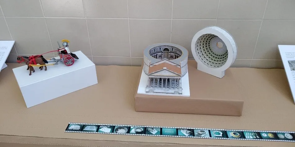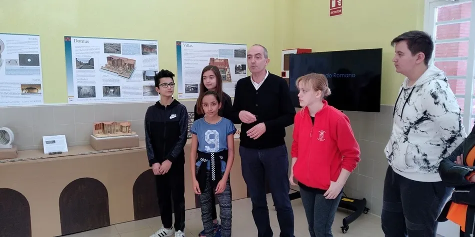 Los alumnos de cultura clásica de 2º de la ESO han trabajado cuatro meses en la exposición junto a su profesor, Fernando Pablos. Han elaborado una serie de maquetas y paneles a la que se suma un vídeo explicativo.