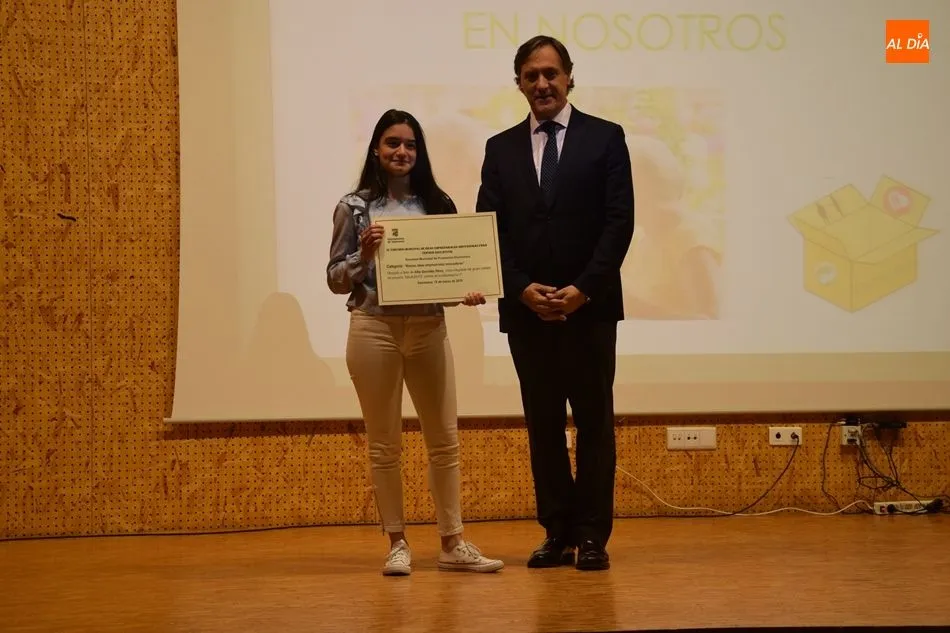 El segundo premio, en la categoría de Bachillerato y Ciclo Formativo de Grado Superior, ha correspondido al IES Venancio Blanco, mientras que en el apartado de Alumnos de ESO y Ciclo Formativo de Grado Medio ha resultado ganador el colegio Salesiano María Auxiliadora. Este segundo premio consiste en un cheque válido para la realización de seminarios de formación emprendedora impartida por OWEN en el centro seleccionado. Y un curso para los alumnos de Bachillerato del centro en la Facultad de Informática de la Universidad Pontificia de Salamanca relacionado con empresa y tecnología a realizar a lo largo del mes de marzo (elaboración de apps, tratamiento de datos en la nube, creación de empresas web,?).