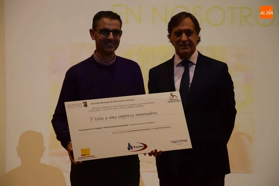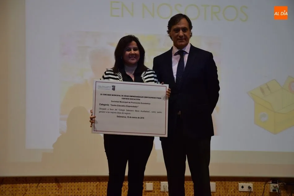 En la categoría ?Centro Educativo Emprendedor?, el primer premio destinado a las mejores ideas de negocio de cada centro en su conjunto ha sido concedido al centro colegio Salesiano María Auxiliadora, que recibirá un cheque-bono para material escolar dotado con 500 euros para el centro educativo y una visita a una empresa innovadora a determinar para 25 alumnos y 2 profesores.