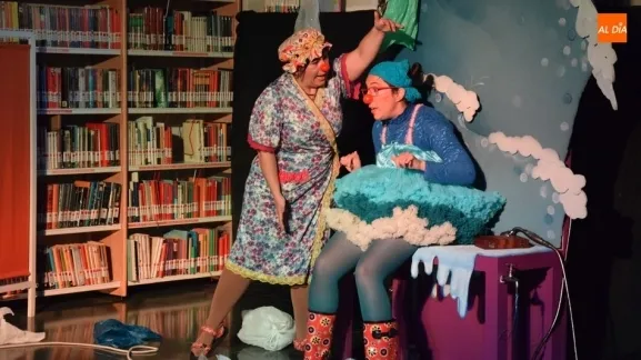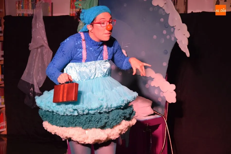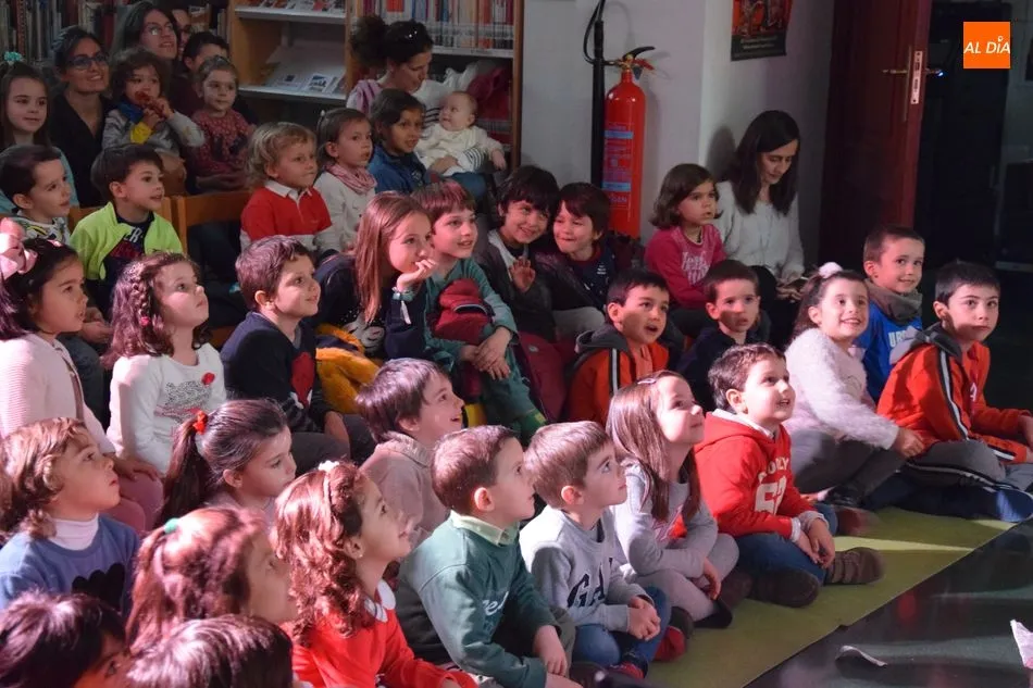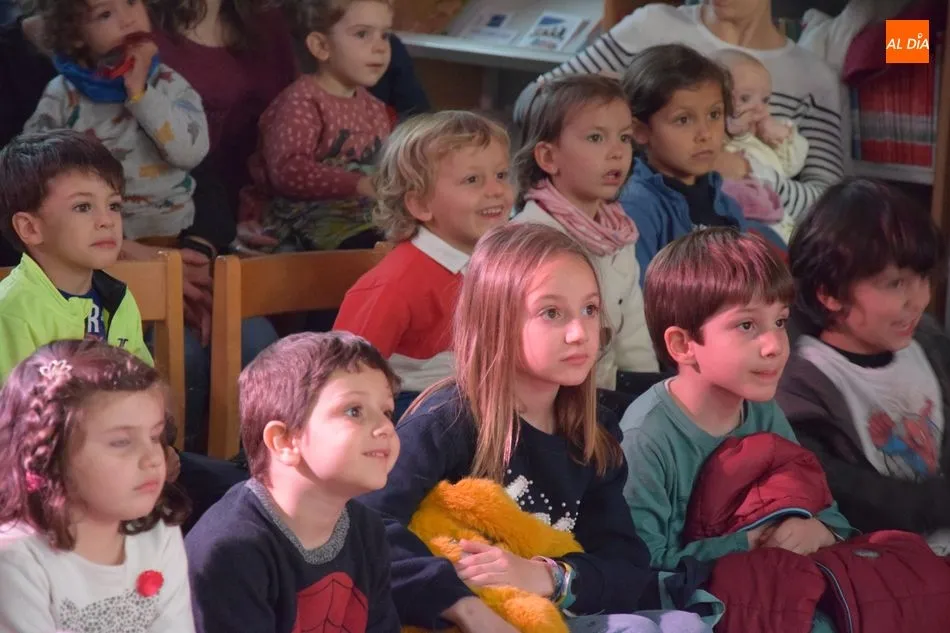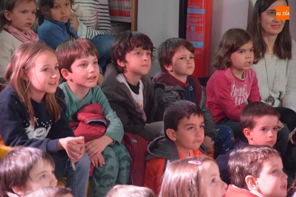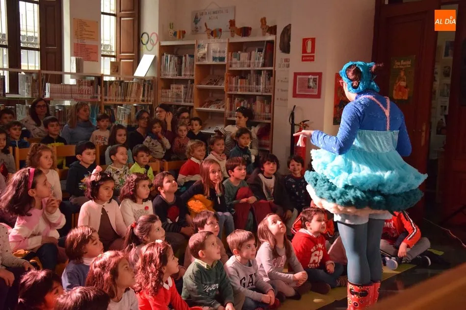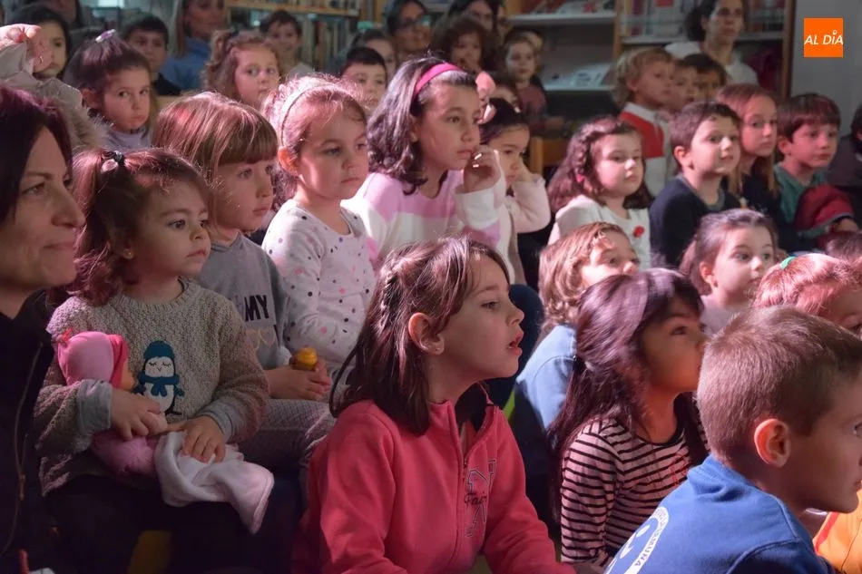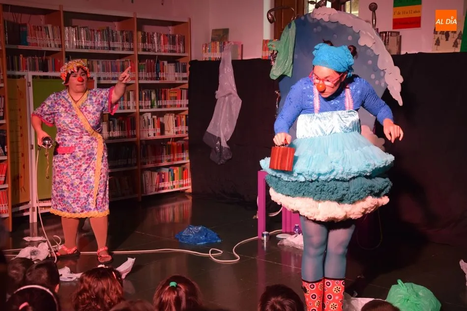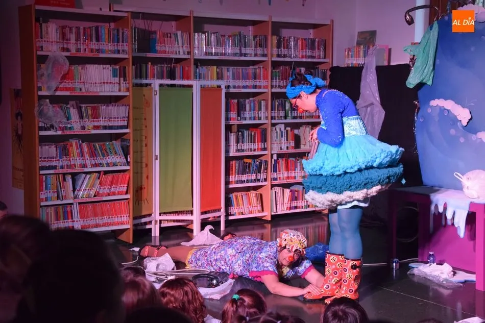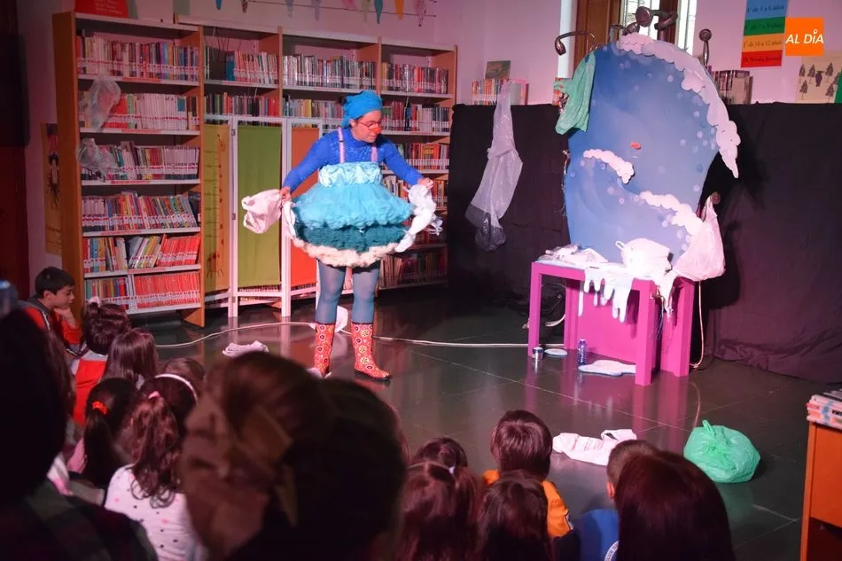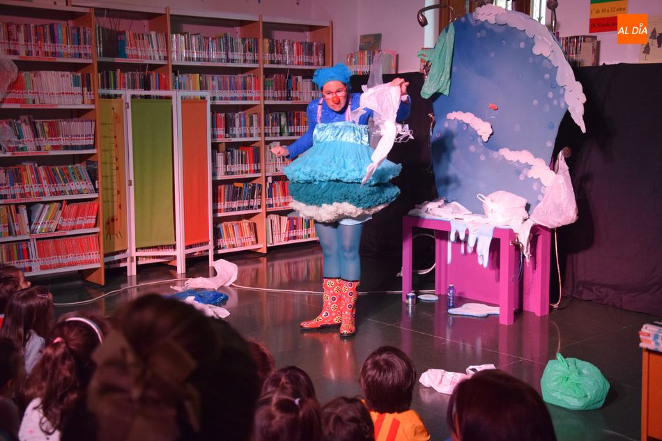 El público infantil ha llenado este lunes por la tarde la Biblioteca Gabriel y Galán para disfrutar de La risa de la tortuga y su montaje ?Hasta las gotas?.