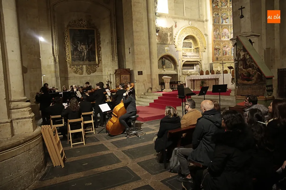 La Catedral Vieja de Salamanca colgó el cartel de "no hay billetes" en la tarde-noche de este lunes para acoger el concierto conjunto entre la Orquesta Barroca y el Coro del COSCYL.