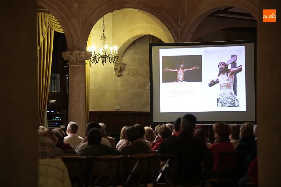Sin pretender comparar en ningún momento, Javier Burrieza ha ilustrado a los presentes sobre las imágenes y la iconografía de la Pasión pucelana y salmantina y sus autores. Y es que, en palabras del propio conferenciante, "los pasos no cayeron del cielo".