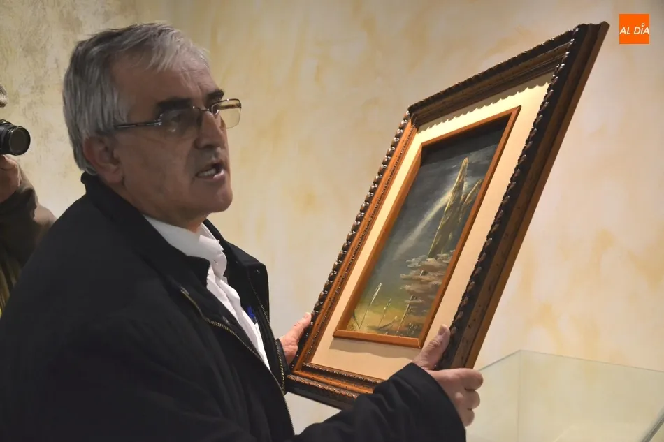 La exposición montada en las dependencias del Seminario Diocesano San Cayetano de Ciudad Rodrigo a modo de repaso de la trayectoria del pintor natural de Espeja Jerónimo Prieto incorporó en la mañana del jueves un cuadro más, totalizándose de este modo 78.