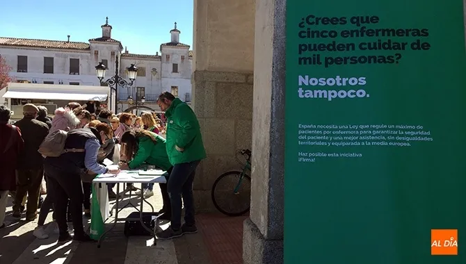 El Sindicato de Enfermería SATSE Salamanca visitaba este jueves Peñaranda para instalar una mesa en la Plaza Nueva con el objetivo de proseguir con la recogida de firmas de su campaña ?La sanidad que merecemos? que el Sindicato de Enfermería comenzó el pasado 7 de noviembre en todo el territorio nacional.