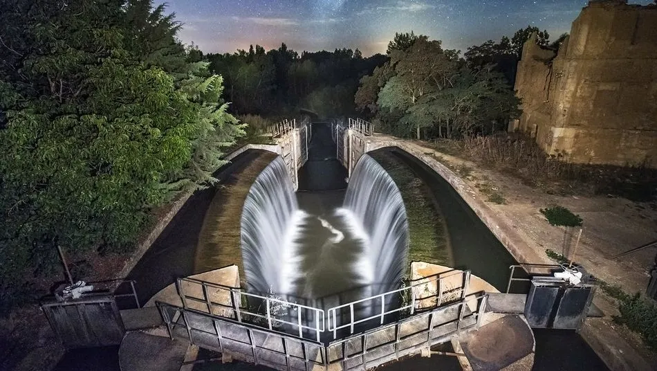 La fotografía ganadora en la categoría ?Infraestructuras?, es para ?Hacia la Vía Láctea?, de Alejandro Pérez García, en el Canal de Castilla, esclusa de Calahorra de Ribas, Palencia.